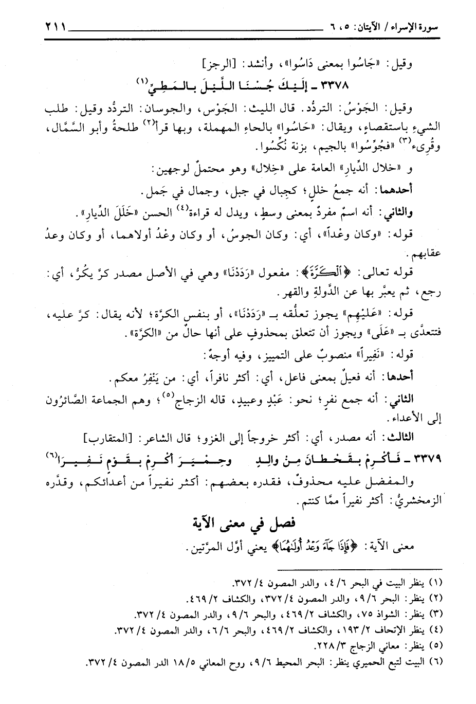 3378 - إلَيْكَ جُسْنَا اللَّيْلَ بالمَطِيِّ ... وقيل: الجَوْسُ: التردُّد. ق لالليث: الجَوْس، والجوسان: التردُّد وقيل: طلب الشيءِ باستقصاءٍ، ويقال: «حَاسُوا» بالحاءِ المهملة، وبها قرأ طلحةُ وأبو السَّمَّال، وقُرِئ «فجُوِّسُوا» بالجيم، بزنة نُكِّسُوا.