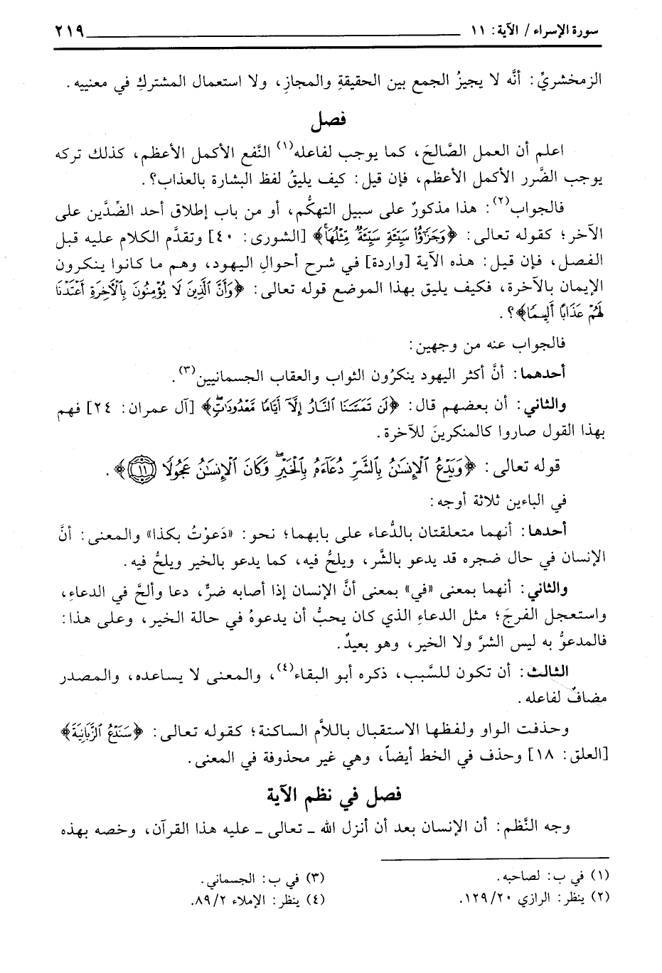 الزمخشريِّ: أنَّه لا يجيزُ الجمع بين الحقيقةِ والمجازِ، ولا استعمال المشتركِ في معنييه.