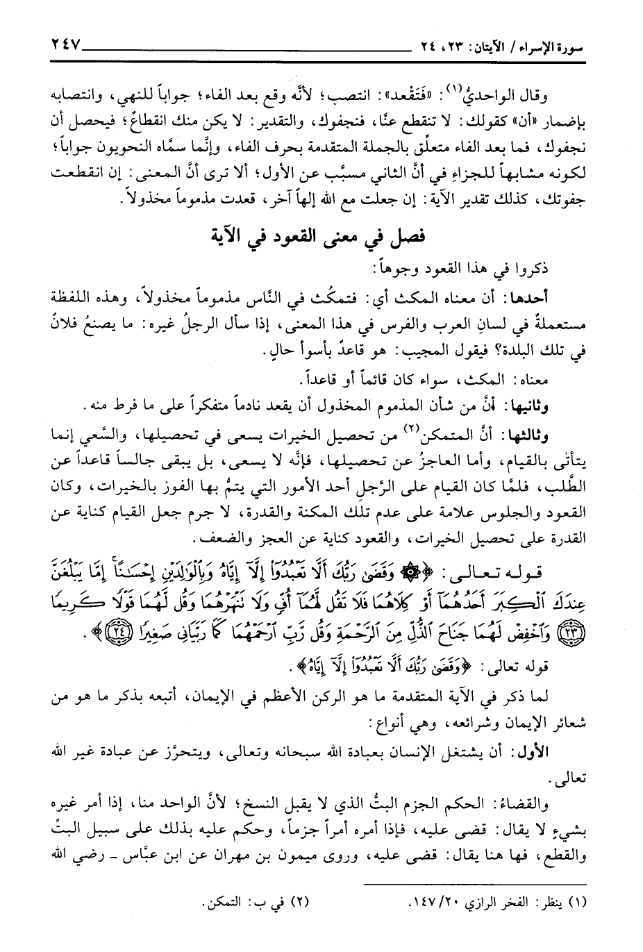 قوله تعالى: {وقضى رَبُّكَ أَلاَّ تعبدوا إِلاَّ إِيَّاهُ} .