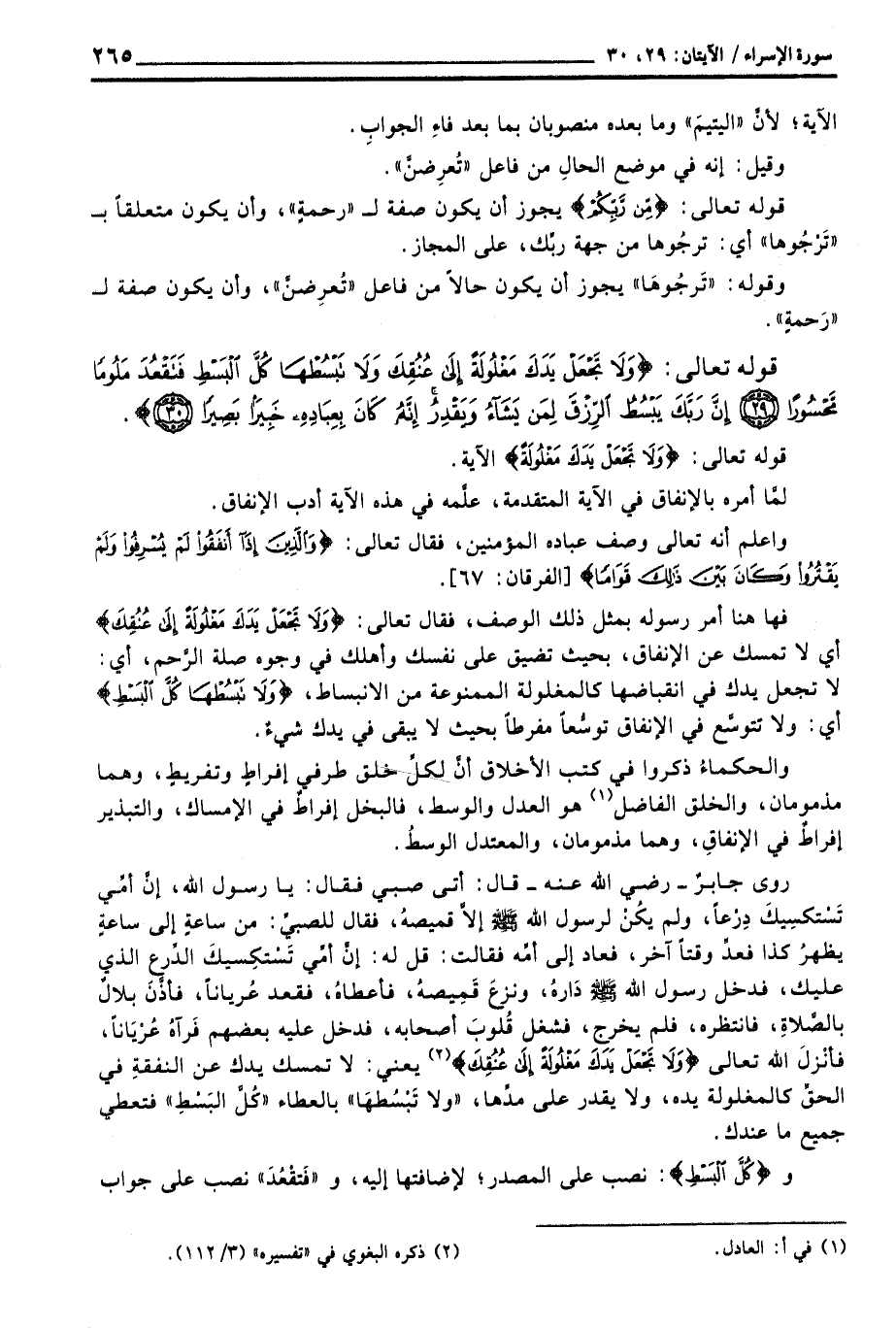 قوله تعالى: {وَلاَ تَجْعَلْ يَدَكَ مَغْلُولَةً} الآية.