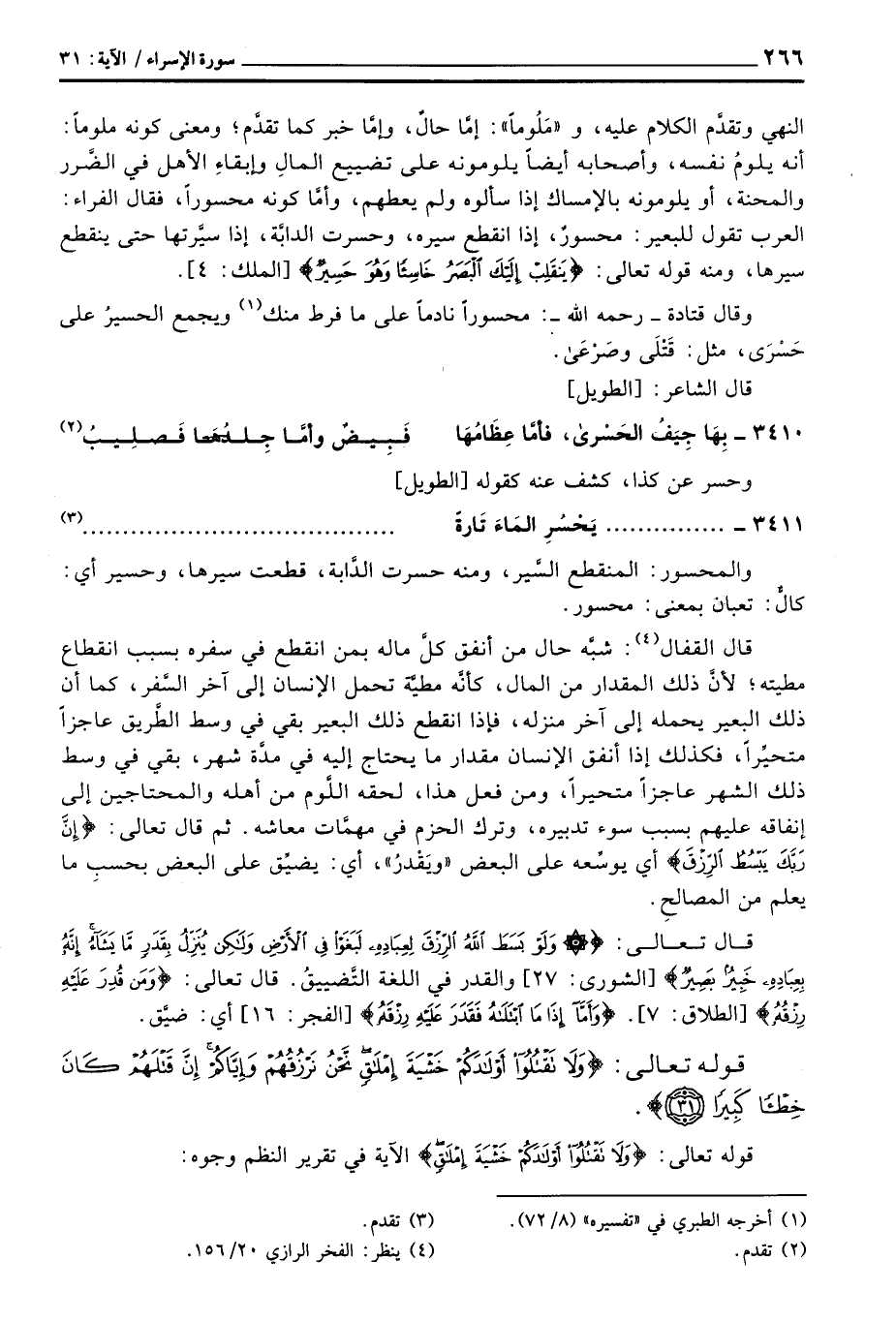 قال القفال: شبَّه حال من أنفق كلَّ ماله بمن انقطع في سفره بسبب انقطاع مطيته؛ لأنَّ ذلك المقدار من المال، كأنَّه مطيَّة تحمل الإنسان إلى آخر السَّفر، كما أن ذلك البعير يحمله إلى آخر منزله، فإذا انقطع ذلك البعير بقي في وسط الطَّريق عاجزاً متحيِّراً، فكذلك إذا أنفق الإنسان مقدار ما يحتاج إليه في مدَّة شهر، بقي في وسط ذلك الشهر عاجزاً متحيراً، ومن فعل هذا، لحقه اللَّوم من أهله والمحتاجين إلى إنفاقه عليهم بسبب سوء تدبيره، وترك الحزم في مهمَّات معاشه.