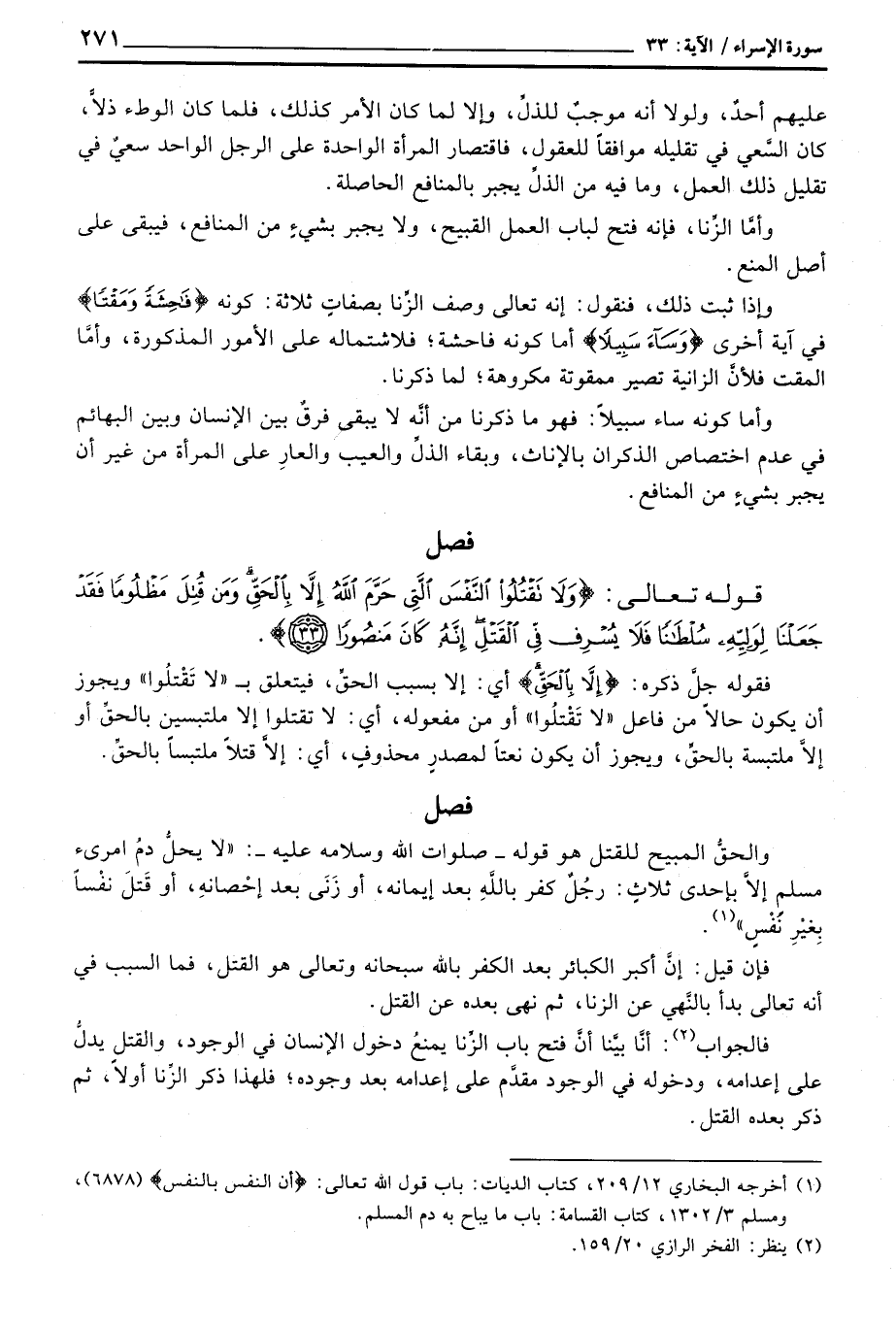 والحقُّ المبيح للقتل هو قوله - صلوات الله وسلامه عليه -: «لا يحلُّ دمُ امرئ مسلم إلاَّ بإحدى ثلاثٍ: رجُلٌ كفر باللهِ بعد إيمانه، أو زنى بعد أحصانهِ، أو قَتلَ نفساً بِغيْرِ نَفْسٍ» .
