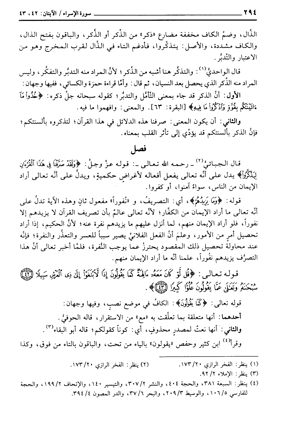 قال الجبائيُّ - رَحِمَهُ اللَّهُ تعالى -: قوله عزَّ وجلَّ: {وَلَقَدْ صَرَّفْنَا فِي هذا القرآن لِيَذَّكَّرُواْ} يدل على أنَّه تعالى يفعل أفعاله لأغراضٍ حكميةٍ، ويدلُّ على أنَّه تعالى أراد الإيمان من الناس، سواءٌ آمنوا، أو كفروا.