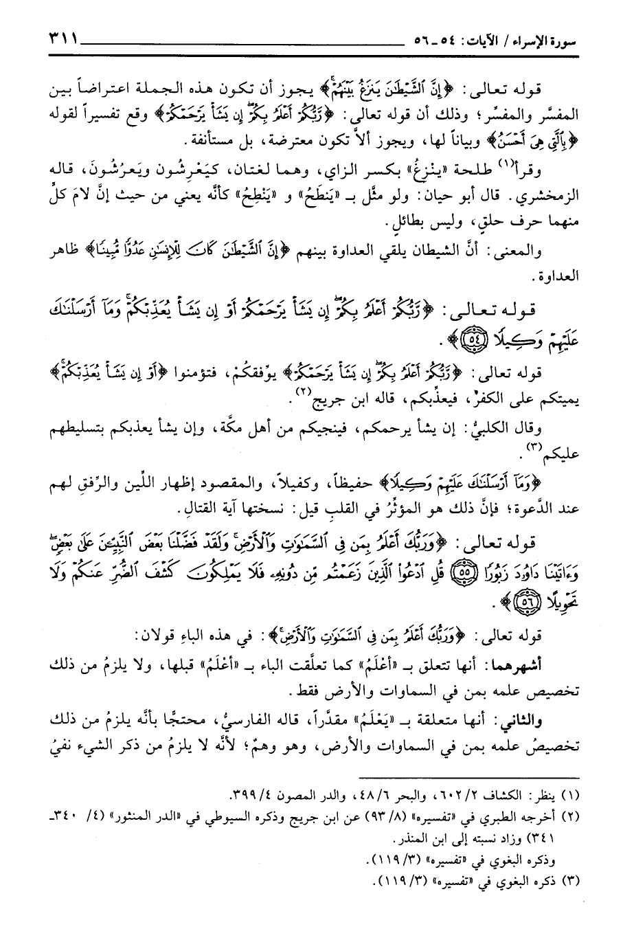 قوله تعالى: {إِنَّ الشيطان يَنزَغُ بَيْنَهُمْ} يجوز أن تكون هذه الجملة اعتراضاً بين المفسَّر والمفسِّر؛ وذلك أن قوله تعالى: {رَّبُّكُمْ أَعْلَمُ بِكُمْ إِن يَشَأْ يَرْحَمْكُمْ} [الإسراء: 54] وقع تفسيراً لقوله {بالتي هِيَ أَحْسَنُ} [الإسراء: 34] وبياناً لها، ويجوز ألاَّ تكون معترضة، بل مستأنفة.