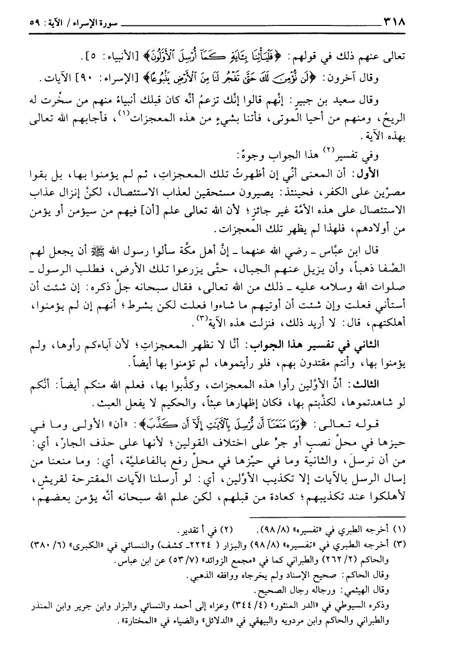 الأول: أن المعنى أنِّي إن أظهرتُ تلك المعجزاتِ، ثم لم يؤمنوا بها، بل بقوا مصرِّين على الكفر، فحينئذ: يصيرون مستحقين لعذاب الاستئصال، لكنَّ إنزال عذاب الاستئصال على هذه الأمَّة غير جائزٍ؛ لأن الله تعالى علم [أن] فيهم من سيؤمن أو يؤمن من أولادهم، فلهذا لم يظهر تلك المعجزات.