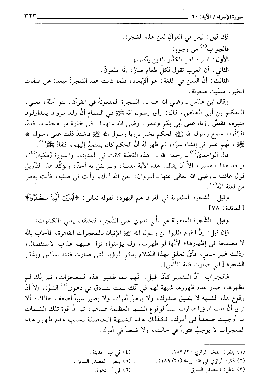 الثالث: أنَّ اللَّعن في اللغة: هو الإبعاد، فلما ك انت هذه الشجرةُ مبعدة عن صفات الخير، سمِّيت ملعونة.