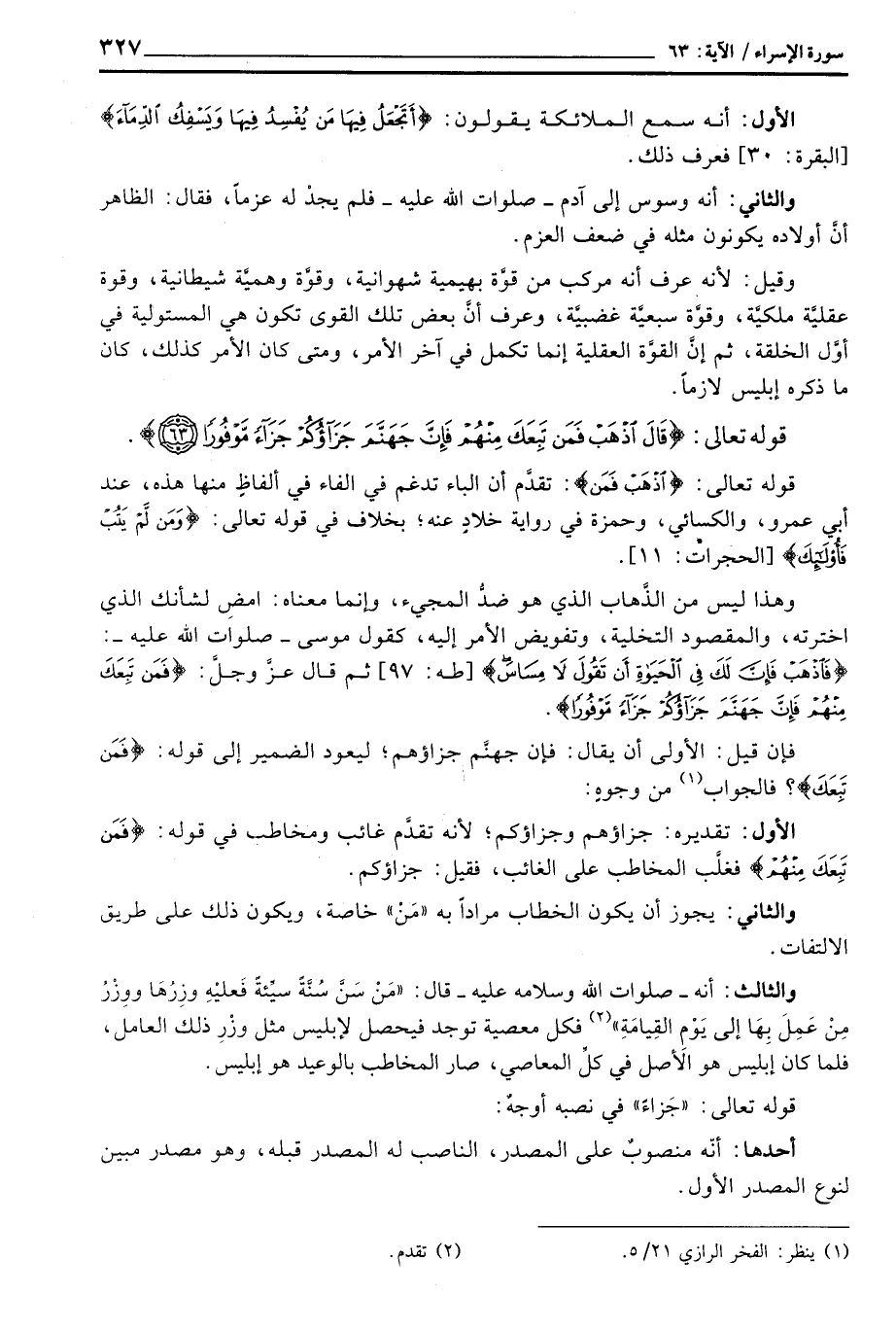 الأول: تقديره: جزاؤهم وجزاؤكم؛ لأنه تقدَّم غائب ومخاطب في قوله: {فَمَن تَبِعَكَ مِنْهُمْ} فغلَّب المخاطب على الغائب، فقيل: جزاؤكم.