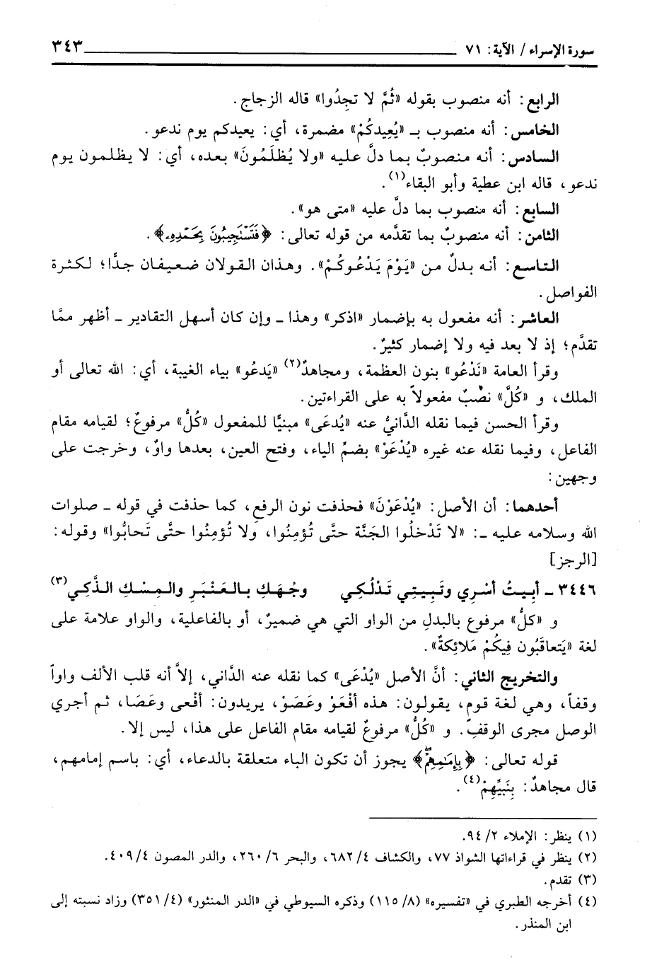 السادس: أنه منصوبٌ بما دلَّ عليه «ولا يُظلَمُونَ» بعده، أي: لا يظلمون يوم ندعو، قاله ابن عطية وأبو البقاء.