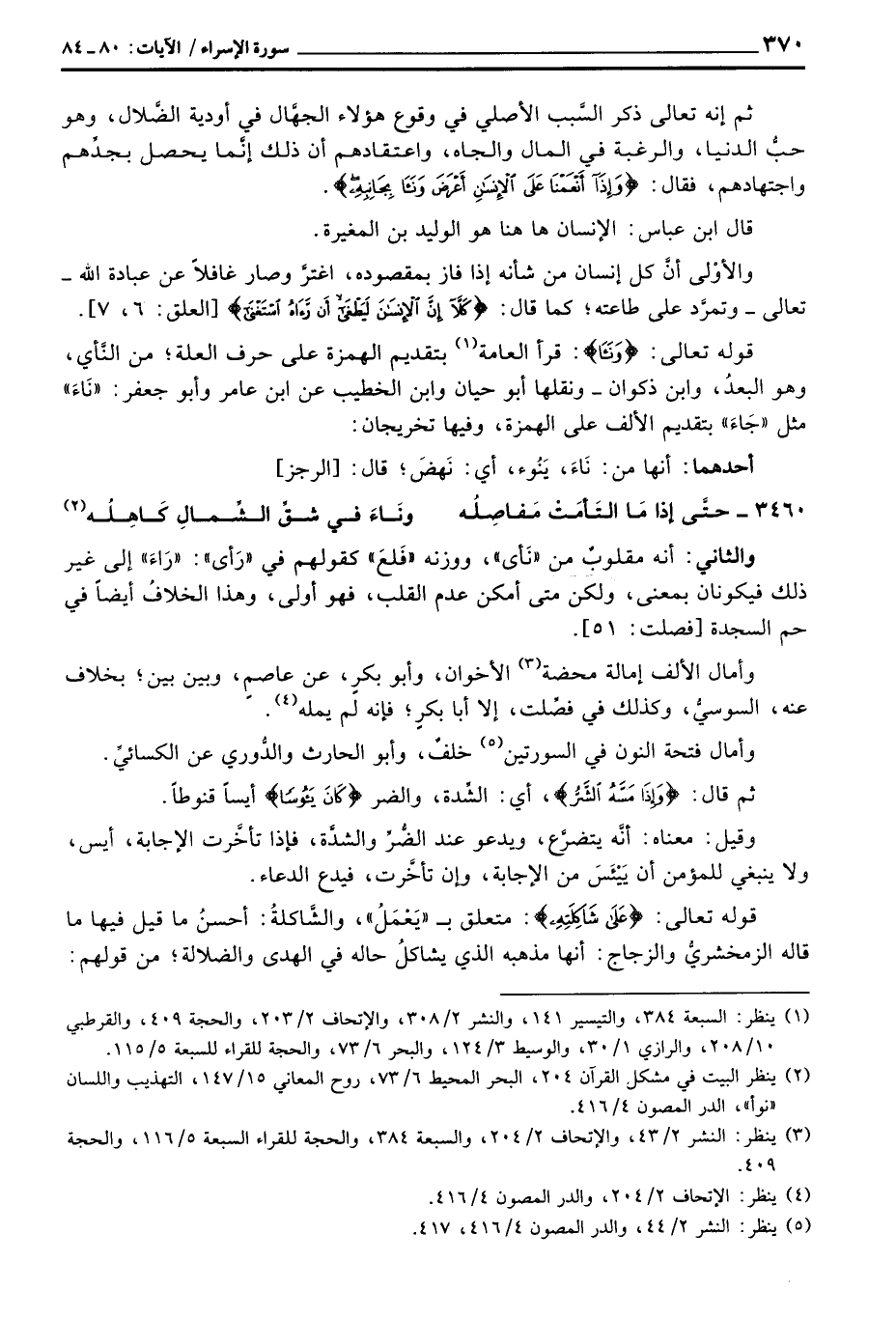 والثاني: أنه مقلوبٌ من «نَأى» ، ووزنه «فَلعَ» كقولهم في «رَأى» : «رَاءَ» إلى غير ذلك فيكونان بمعنى، ولكن متى أمكن عدم القلب، فهو أولى، وهذا الخلافُ أيضاً في حم السجدة [فصلت: 51] .
