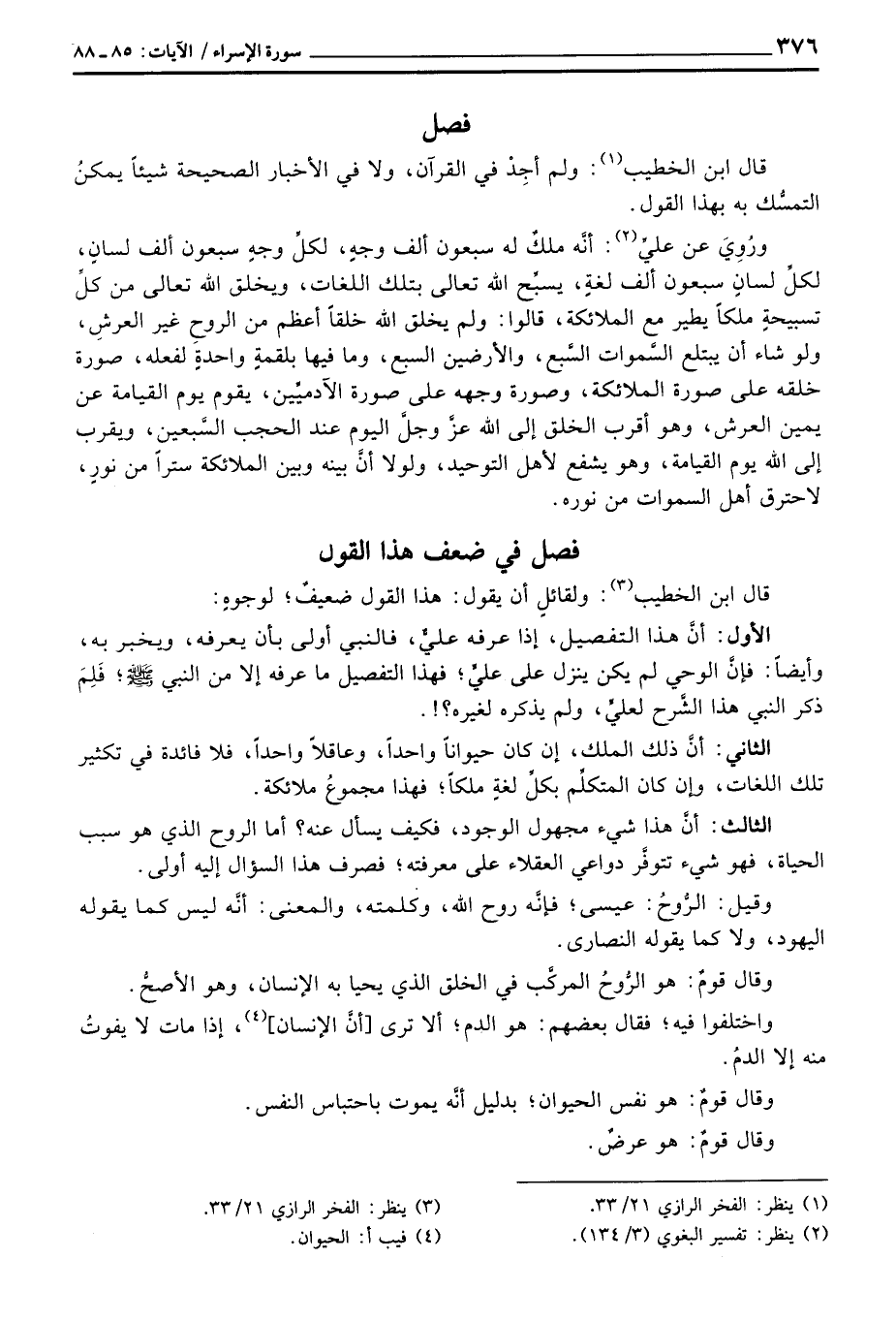 قال ابن الخطيب: ولقائلٍ أن يقول: هذا القول ضعيفٌ؛ لوجوهٍ:
