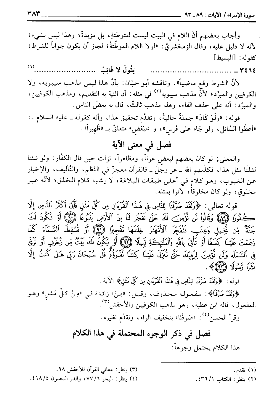 فصل في ذكر الوجوه المحتملة في هذا الكلام