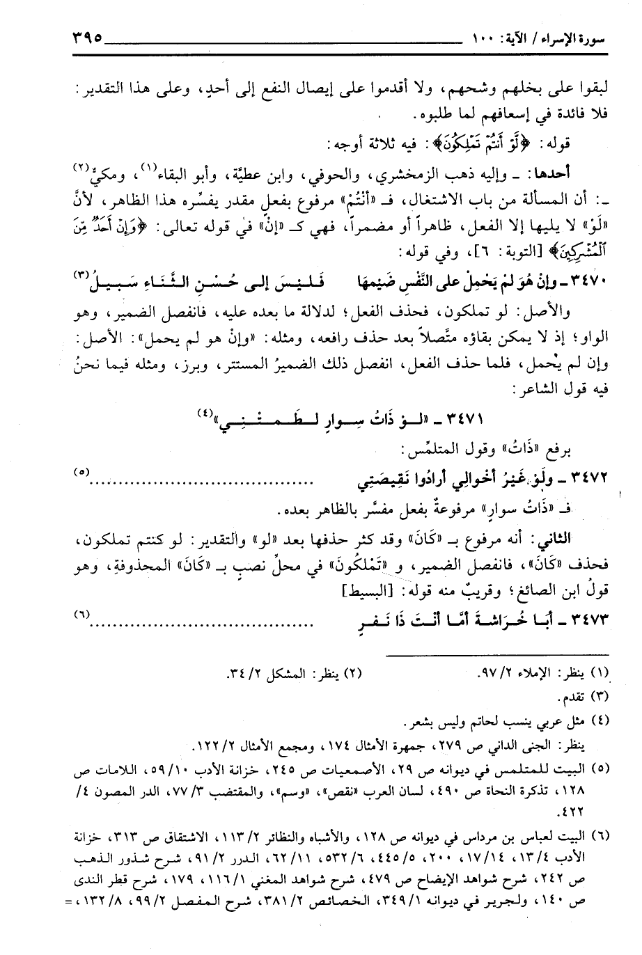 الثاني: أنه مرفوع ب «كَانَ» وقد كثر حذفها بعد «لو» والتقدير: لو كنتم تملكون، فحذف «كَانَ» ، فانفصل الضمير، و «تَمْلكُونَ» في محلِّ نصبٍ ب «كَانَ» المحذوفةِ، وهو قولُ ابن الصائغ؛ وقريبٌ منه قوله: [البسيط]