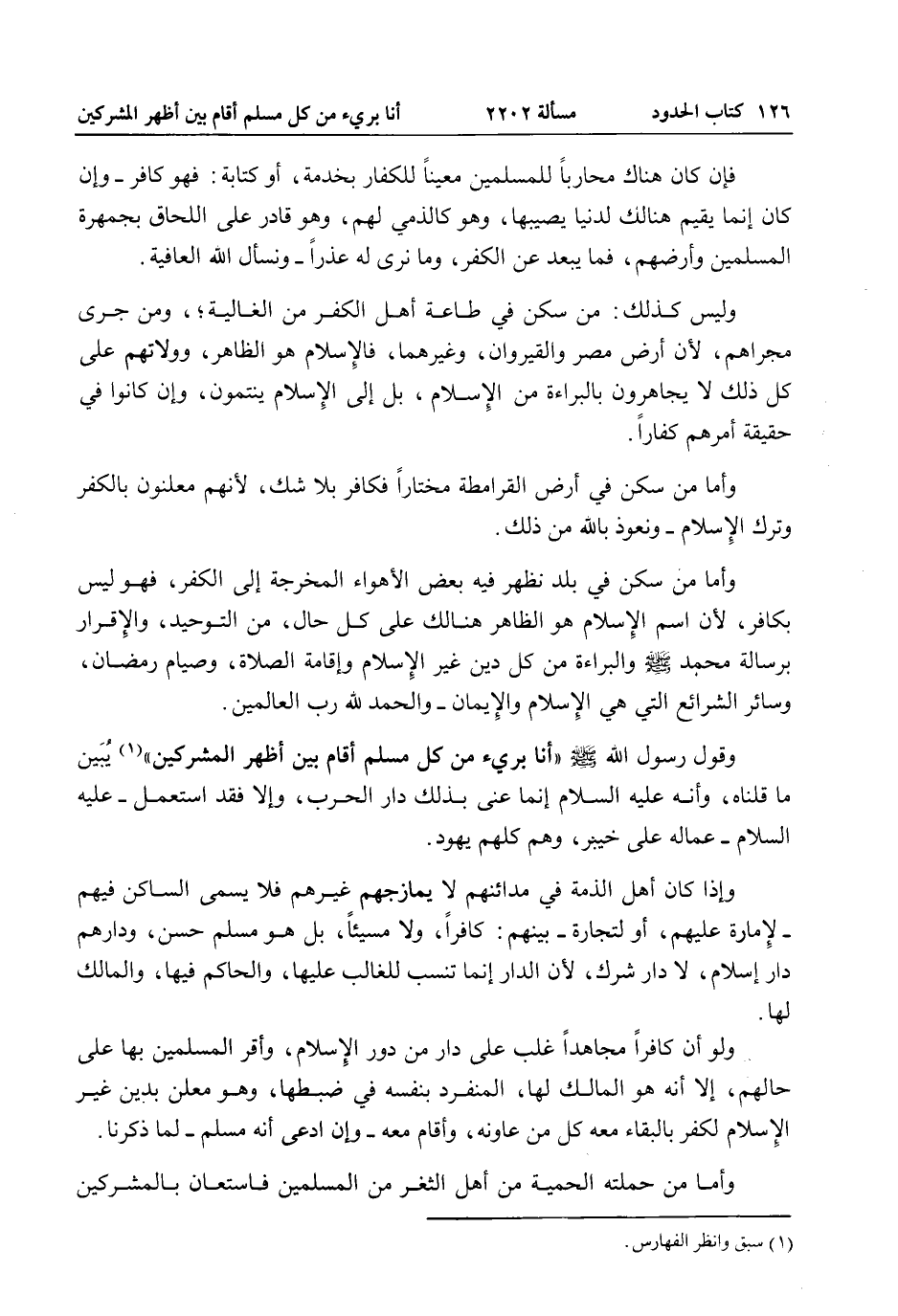 وَأَمَّا مَنْ سَكَنَ فِي بَلَدٍ تَظْهَرُ فِيهِ بَعْضُ الْأَهْوَاءِ الْمُخْرِجَةِ إلَى الْكُفْرِ، فَهُوَ لَيْسَ بِكَافِرٍ، لِأَنَّ اسْمَ الْإِسْلَامِ هُوَ الظَّاهِرُ هُنَالِكَ عَلَى كُلِّ حَالٍ، مِنْ التَّوْحِيدِ، وَالْإِقْرَارِ بِرِسَالَةِ مُحَمَّدٍ - صَلَّى اللَّهُ عَلَيْهِ وَسَلَّمَ - وَالْبَرَاءَةِ مِنْ كُلِّ دِينٍ غَيْرِ الْإِسْلَامِ وَإِقَامَةِ الصَّلَاةِ، وَصِيَامِ رَمَضَانَ، وَسَائِرِ الشَّرَائِعِ الَّتِي هِيَ الْإِسْلَامُ وَالْإِيمَانُ - وَالْحَمْدُ لِلَّهِ رَبِّ الْعَالَمِينَ.