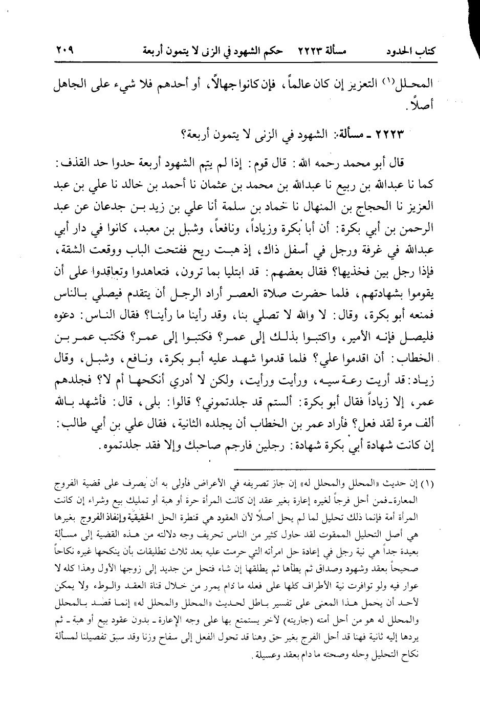 2223 - مَسْأَلَةٌ: الشُّهُودُ فِي الزِّنَى لَا يُتِمُّونَ أَرْبَعَةً؟