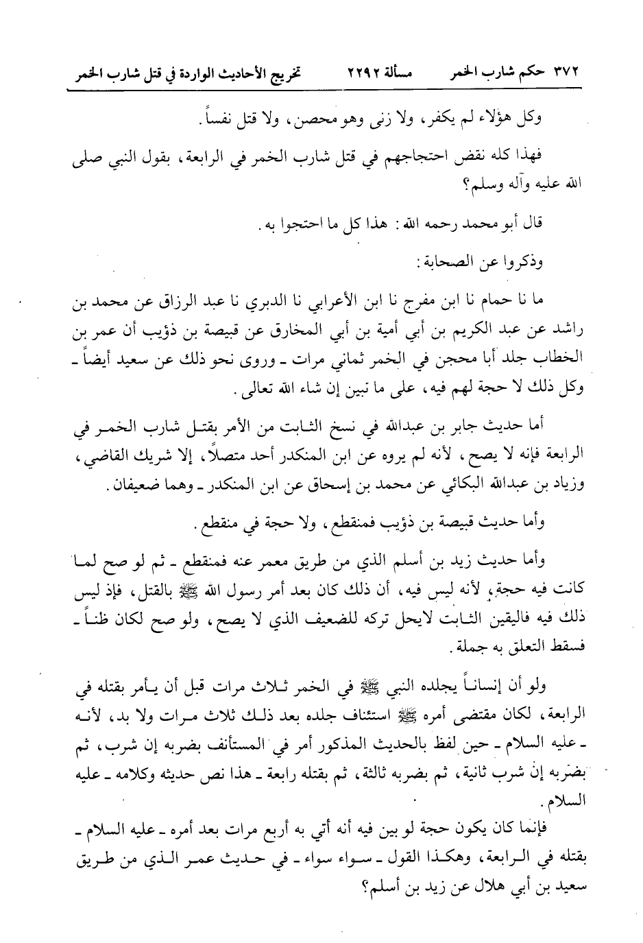 فَهَذَا كُلُّهُ نَقَضَ احْتِجَاجَهُمْ فِي قَتْلِ شَارِبِ الْخَمْرِ فِي الرَّابِعَةِ، بِقَوْلِ النَّبِيِّ - صَلَّى اللَّهُ عَلَيْهِ وَآلِهِ وَسَلَّمَ -؟ قَالَ أَبُو مُحَمَّدٍ - رَحِمَهُ اللَّهُ -: هَذَا كُلُّ مَا احْتَجُّوا بِهِ.