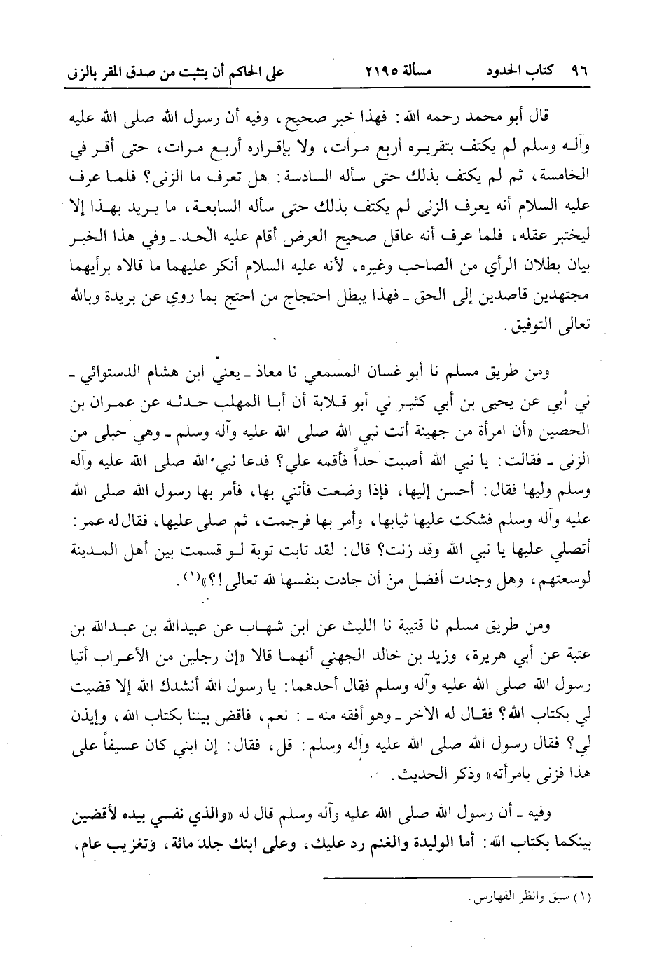 قَالَ أَبُو مُحَمَّدٍ - رَحِمَهُ اللَّهُ -: فَهَذَا خَبَرٌ صَحِيحٌ، وَفِيهِ أَنَّ رَسُولَ اللَّهِ - صَلَّى اللَّهُ عَلَيْهِ وَآلِهِ وَسَلَّمَ - لَمْ يَكْتَفِ بِتَقْرِيرِهِ أَرْبَعَ مَرَّاتٍ، وَلَا بِإِقْرَارِهِ أَرْبَعَ مَرَّاتٍ، حَتَّى أَقَرَّ فِي الْخَامِسَةِ، ثُمَّ لَمْ يَكْتَفِ بِذَلِكَ حَتَّى سَأَلَهُ السَّادِسَةَ: هَلْ تَعْرِفُ مَا الزِّنَى؟ فَلَمَّا عَرَفَ - عَلَيْهِ السَّلَامُ - أَنَّهُ يَعْرِفُ الزِّنَى لَمْ يَكْتَفِ بِذَلِكَ حَتَّى سَأَلَهُ السَّابِعَةَ، مَا يُرِيدُ بِهَذَا إلَّا لِيَخْتَبِرَ عَقْلَهُ، فَلَمَّا عَرَفَ أَنَّهُ عَاقِلٌ صَحِيحُ الْعَرْضِ أَقَامَ عَلَيْهِ الْحَدَّ - وَفِي هَذَا الْخَبَرِ بَيَانُ بُطْلَانِ الرَّأْيِ مِنْ الصَّاحِبِ وَغَيْرِهِ، لِأَنَّهُ - عَلَيْهِ السَّلَامُ - أَنْكَرَ عَلَيْهِمَا مَا قَالَاهُ بِرَأْيِهِمَا مُجْتَهِدِينَ قَاصِدِينَ إلَى الْحَقِّ - فَهَذَا يُبْطِلُ احْتِجَاجَ مَنْ احْتَجَّ بِمَا رُوِيَ عَنْ بُرَيْدَةَ وَبِاَللَّهِ تَعَالَى التَّوْفِيقُ