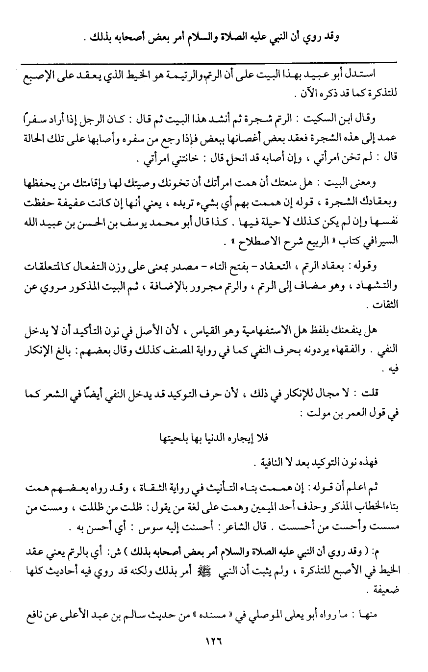 ـــــــــــــــــــــــــــــQاستدل أبو عبيد بهذا البيت على أن الرتم. والرتيمة هو الخيط الذي يعقد على الإصبع للتذكرة كما قد ذكره الآن.