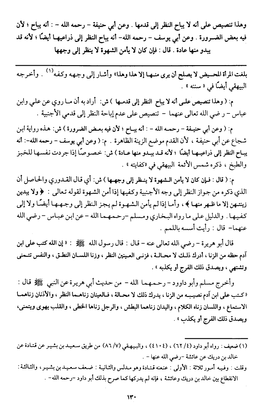 ـــــــــــــــــــــــــــــQبلغت المرأة المحيض لا يصلح أن يرى منها إلا هذا وهذا» وأشار إلى وجهه وكفه. وأخرجه البيهقي أيضا في "سننه".
