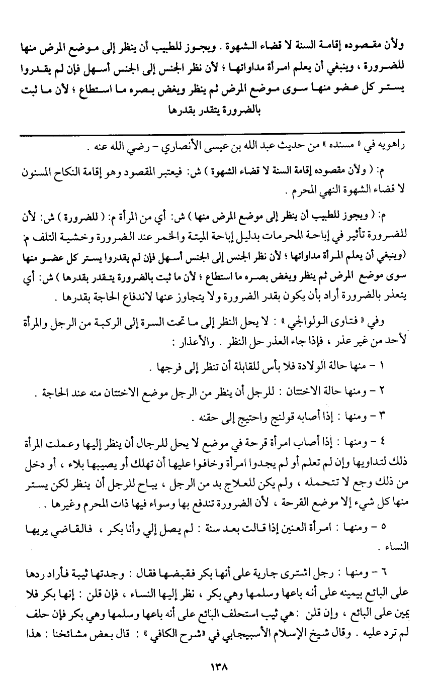 ومنها حالة الاختتان: للرجل أن ينظر من الرجل موضع الاختتان منه عند الحاجة.