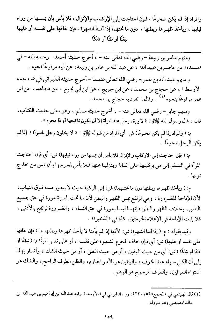 ومنهم جابر - رَضِيَ اللَّهُ تَعَالَى عَنْهُ -، أخرج حديثه مسلم، وهو معنى حديث الكتاب، قال: قال رسول الله - صَلَّى اللَّهُ عَلَيْهِ وَسَلَّمَ -: «لا يبيتن رجل عند امرأة إلا أن يكون ناكحها أو ذا محرم» .