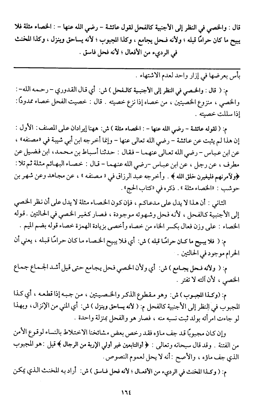 الثاني: أن هذا لا يدل على مدعاكم، فإن كون الخصاء مثلة لا يدل على أن نظر الخصي إلى الأجنبية كالفحل؛ لأنه فحل وشهوته موجودة، فصار كغير الخصي في الحالتين. قوله الخصاء: على وزن فعال بكسر الخاء من خصاه وأخصى بزيادة الهمزة خصاء قوله بضم الميم.