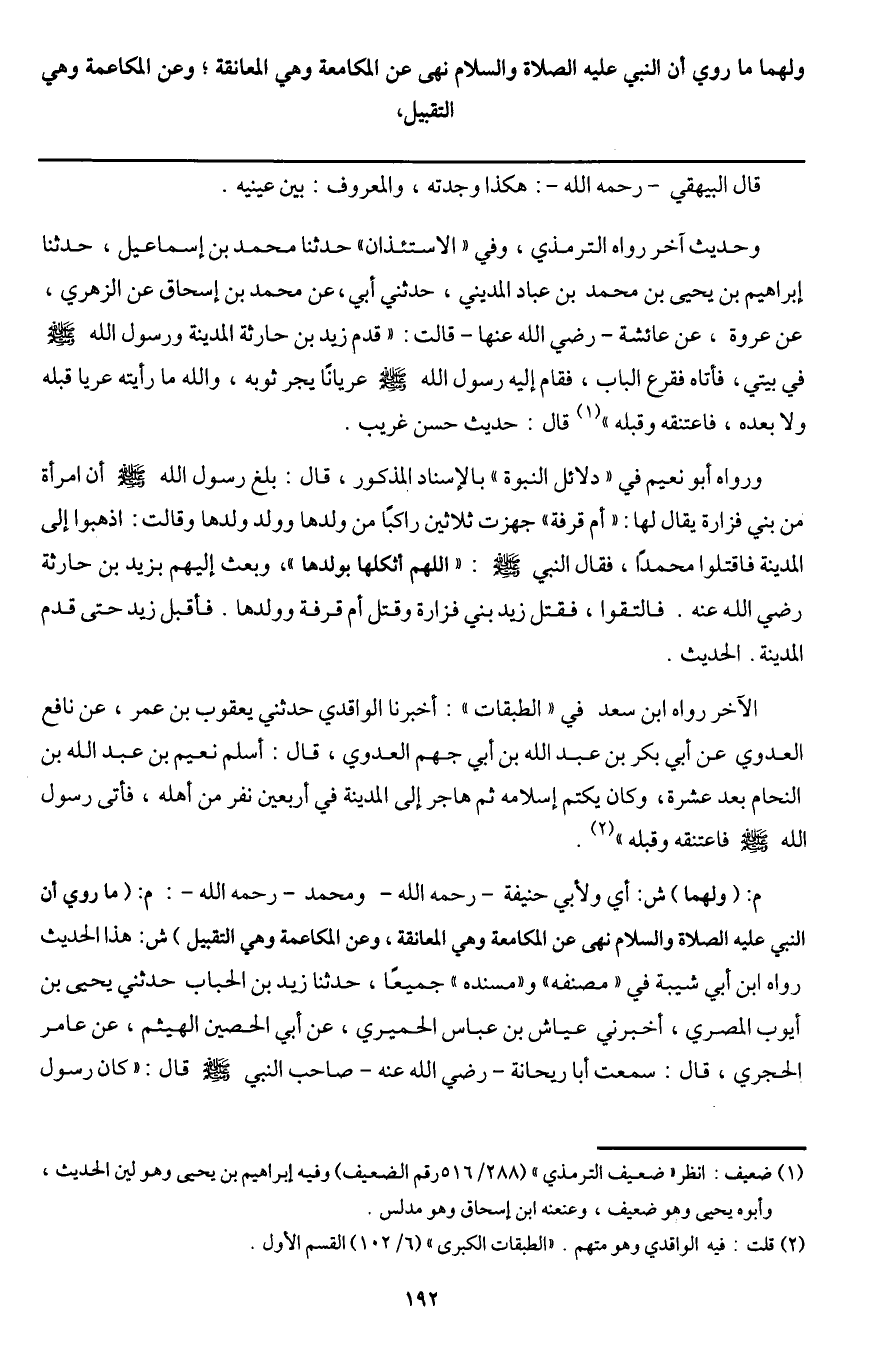 م: (ولهما) ش: أي ولأبي حنيفة - رَحِمَهُ اللَّهُ - ومحمد - رَحِمَهُ اللَّهُ -: م: (ما روي أن النبي - عَلَيْهِ الصَّلَاةُ وَالسَّلَامُ - «نهى عن المكامعة وهي المعانقة، وعن المكاعمة وهي التقبيل» ش: هذا الحديث رواه ابن أبي شيبة في "مصنفه" و"مسنده " جميعا، حدثنا زيد بن الحباب حدثني يحيى بن أيوب المصري، أخبرني عياش بن عباس الحميري، عن أبي الحصين الهيثم، عن عامر الحجري، قال: سمعت أبا ريحانة - رَضِيَ اللَّهُ عَنْهُ - صاحب النبي - صَلَّى اللَّهُ عَلَيْهِ وَسَلَّمَ - قال: «كان رسول