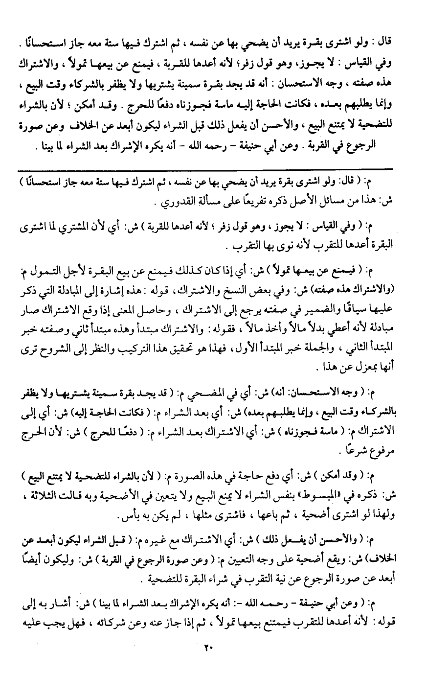 م: (والأحسن أن يفعل ذلك) ش: أي الاشتراك مع غيره م: (قبل الشراء ليكون أبعد عن الخلاف) ش: ويقع أضحية على وجه التعيين م: (وعن صورة الرجوع في القربة) ش: وليكون أيضا أبعد عن صورة الرجوع عن نية التقرب في شراء البقرة للتضحية.
