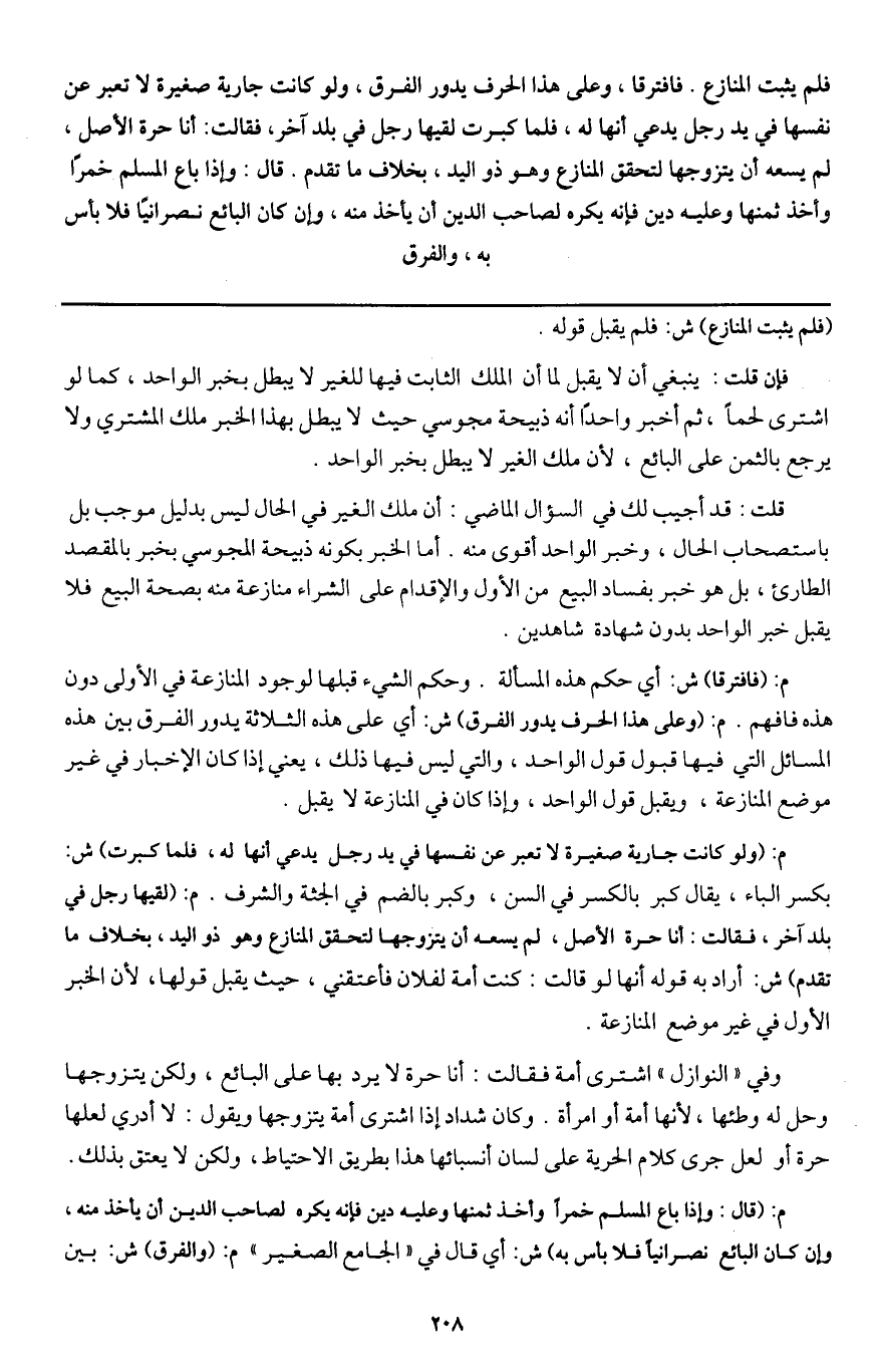 قلت: قد أجيب لك في السؤال الماضي: أن ملك الغير في الحال ليس بدليل موجب بل باستصحاب الحال، وخبر الواحد أقوى منه. أما الخبر بكون ذبيحة المجوسي بخبر بالمقصد الطارئ، بل هو خبر بفساد البيع من الأول والإقدام على الشراء منازعة منه بصحة البيع فلا يقبل خبر الواحد بدون شهادة شاهدين.