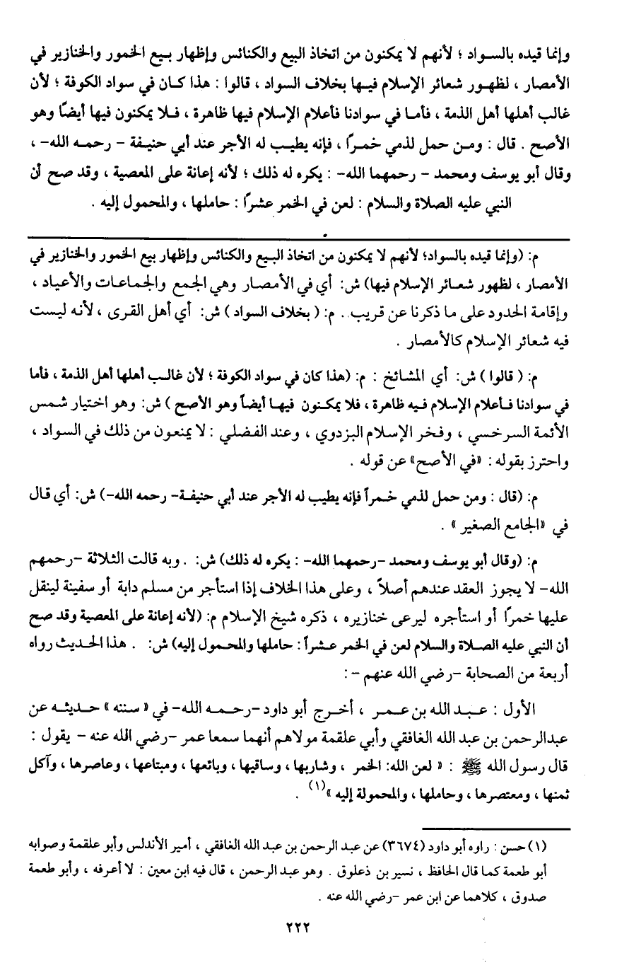 الأول: عبد الله بن عمر، أخرج أبو داود - رَحِمَهُ اللَّهُ - في "سننه " حديثه عن عبد الرحمن بن عبد الله الغافقي وأبي علقمة مولاهم أنهما سمعا عمر - رَضِيَ اللَّهُ عَنْهُ - يقول: قال رسول الله - صَلَّى اللَّهُ عَلَيْهِ وَسَلَّمَ -: «لعن الله: الخمر، وشاربها، وساقيها، وبائعها، ومبتاعها، وعاصرها، وآكل ثمنها، ومعتصرها، وحاملها، والمحمول إليه» .