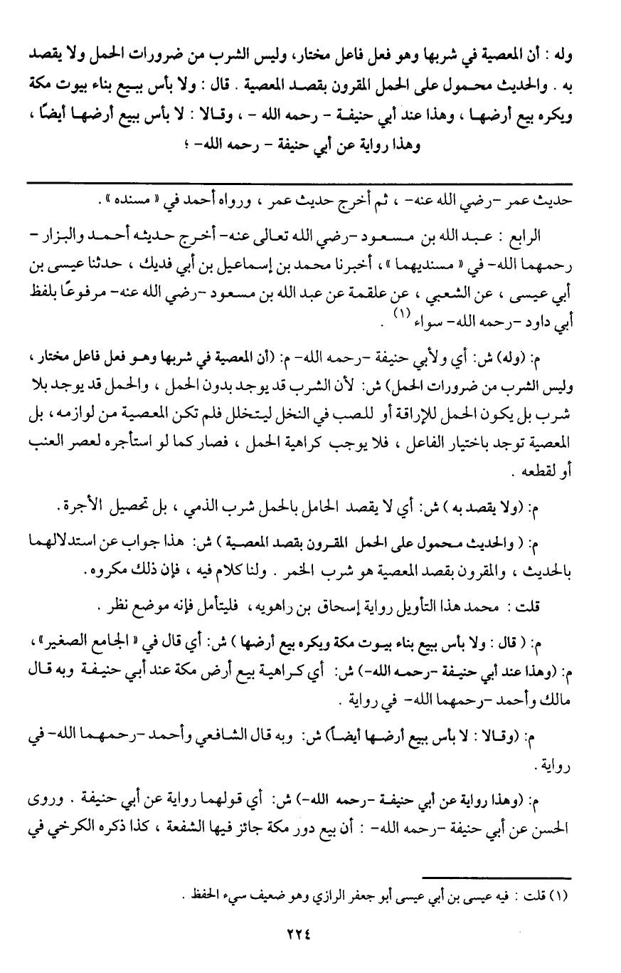 م (والحديث محمول على الحمل المقرون بقصد المعصية) ش: هذا جواب عن استدلالهما بالحديث، والمقرون بقصد المعصية هو شرب الخمر. ولنا كلام فيه، فإن ذلك مكروه.