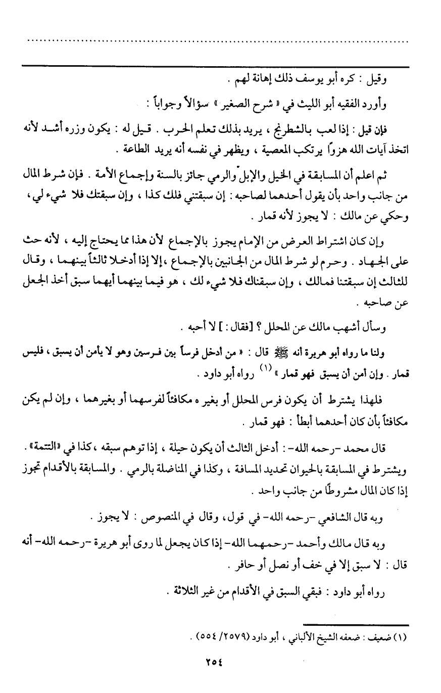رواه أبو داود: فبقي السبق في الأقدام من غير الثلاثة.