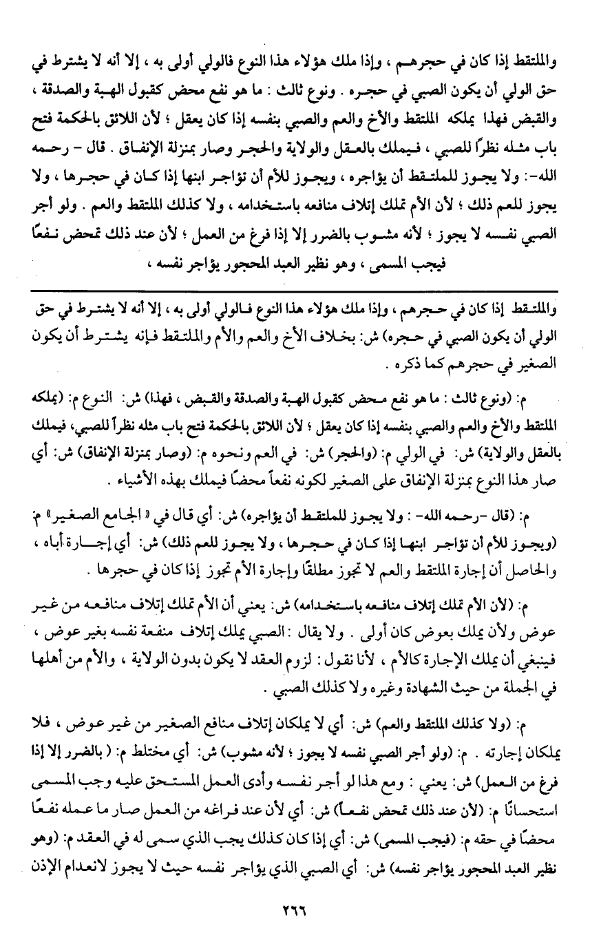 والملتقط إذا كان في حجرهم، وإذا ملك هؤلاء هذا النوع فالولي أولى به، إلا أنه لا يشترط في حق الولي أن يكون الصبي في حجره. ونوع ثالث: ما هو نفع محض كقبول الهبة والصدقة، والقبض فهذا يملكه الملتقط والأخ والعم والصبي بنفسه إذا كان يعقل؛ لأن اللائق بالحكمة فتح باب مثله نظرا للصبي، فيملك بالعقل والولاية والحجر وصار بمنزلة الإنفاق.