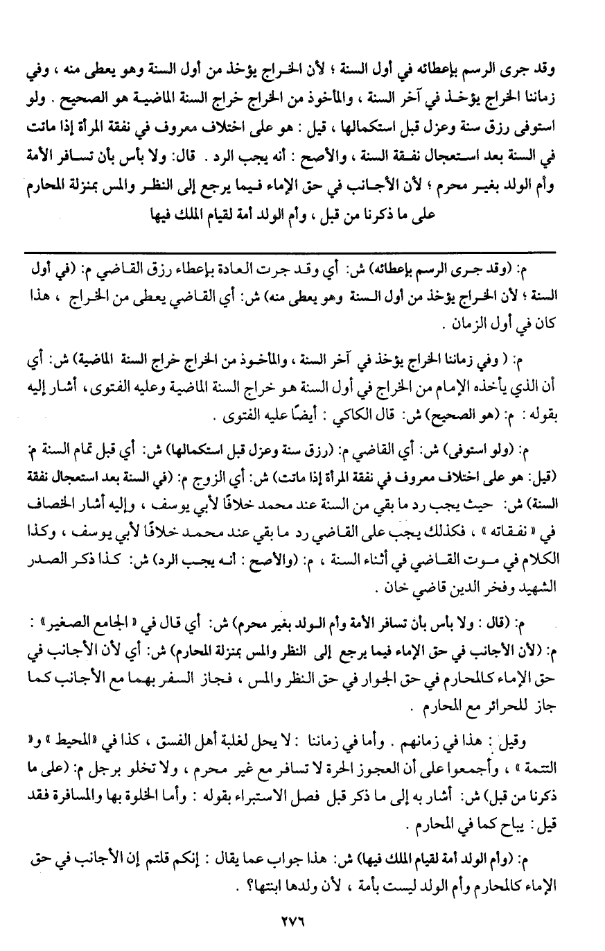 ة قال: ولا بأس بأن تسافر الأمة وأم الولد بغير محرم؛ لأن الأجانب في حق الإماء فيما يرجع إلى النظر والمس بمنزلة المحارم على ما ذكرنا من قبل، وأم الولد أمة لقيام الملك فيها