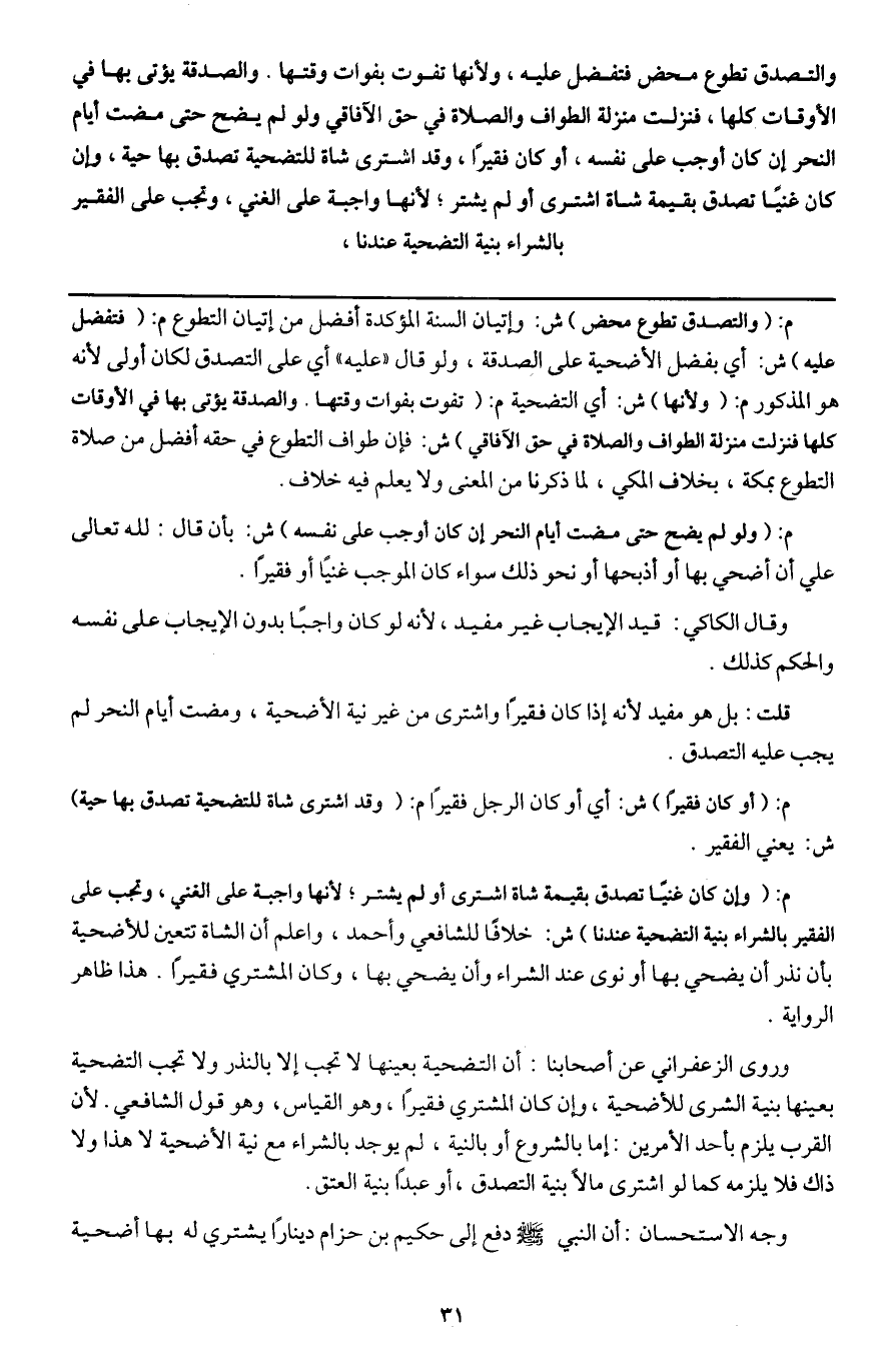م: (والتصدق تطوع محض) ش: وإتيان السنة المؤكدة أفضل من إتيان التطوع م: (فتفضل عليه) ش: أي تفضل الأضحية على الصدقة، ولو قال " عليه " أي على التصدق لكان أولى؛ لأنه هو المذكور م: (ولأنها) ش: أي التضحية م: (تفوت بفوات وقتها والصدقة يؤتى بها في الأوقات كلها فنزلت منزلة الطواف والصلاة في حق الآفاقي) ش: فإن طواف التطوع في حقه أفضل من صلاة التطوع بمكة، بخلاف المكي، لما ذكرنا من المعنى ولا يعلم فيه خلاف.