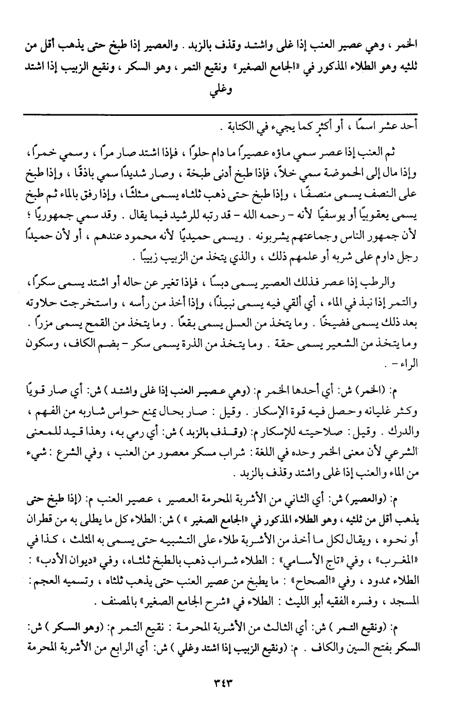 . والعصير إذا طبخ حتى يذهب أقل من ثلثيه وهو الطلاء المذكور في " الجامع الصغير "