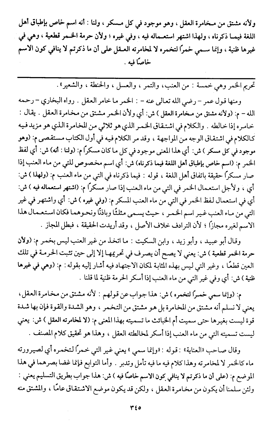 ـــــــــــــــــــــــــــــQتحريم الخمر وهي خمسة: من العنب، والتمر، والعسل، والحنطة، والشعير» .