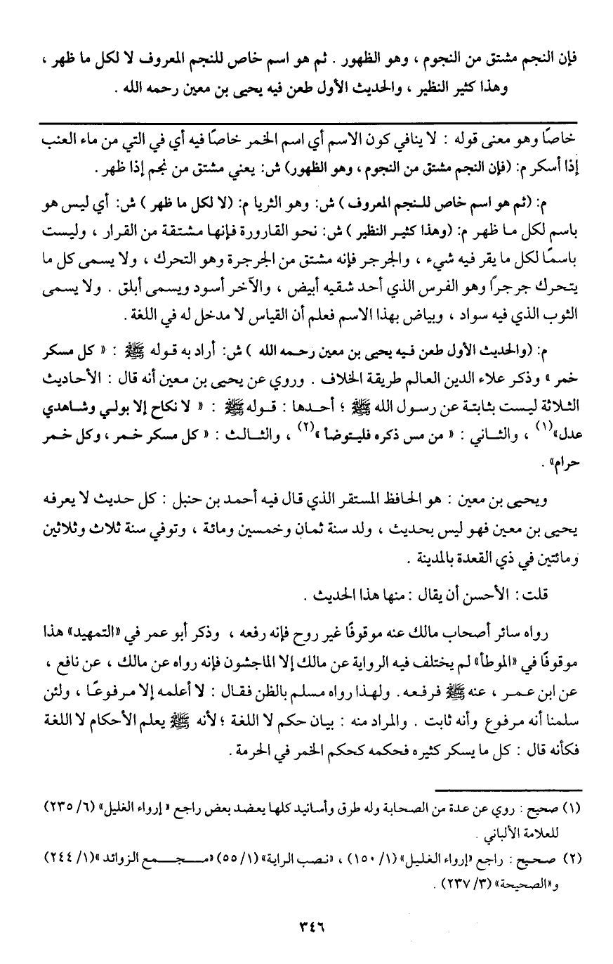 فإن النجم مشتق من النجوم، وهو الظهور. ثم هو اسم خاص للنجم المعروف لا لكل ما ظهر، وهذا كثير النظير، والحديث الأول طعن فيه يحيى بن معين - رَحِمَهُ اللَّهُ -.