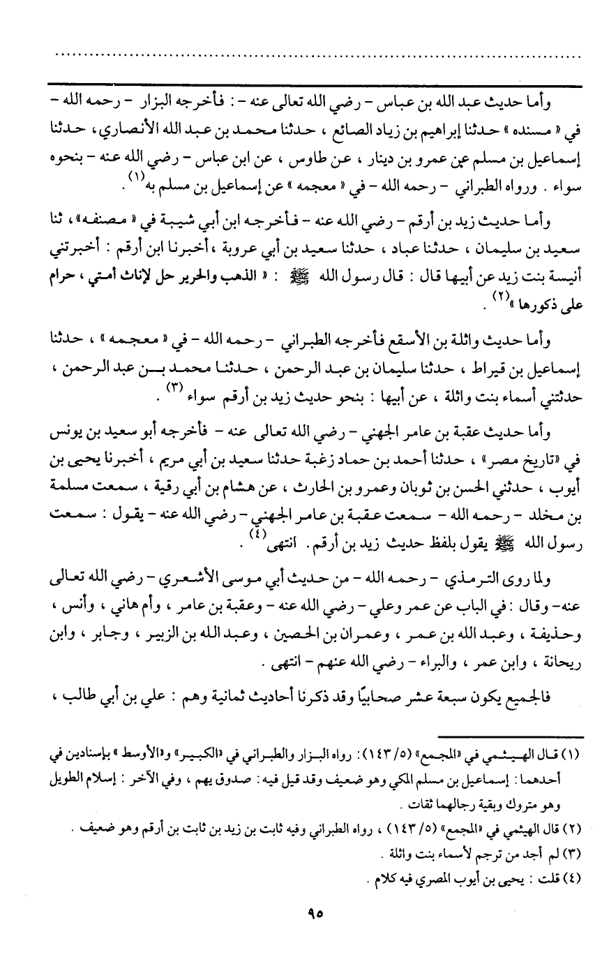 وأما حديث زيد بن أرقم - رَضِيَ اللَّهُ عَنْهُ - فأخرجه ابن أبي شيبة في " مصنفه "، ثنا سعيد بن سليمان، حدثنا عباد، حدثنا سعيد بن أبي عروبة، أخبرنا بن أرقم: أخبرتني أنيسة بنت زيد عن أبيها قال: قال رسول الله - صَلَّى اللَّهُ عَلَيْهِ وَسَلَّمَ -: «الذهب والحرير حل لإناث أمتي، حرام على ذكورها» .