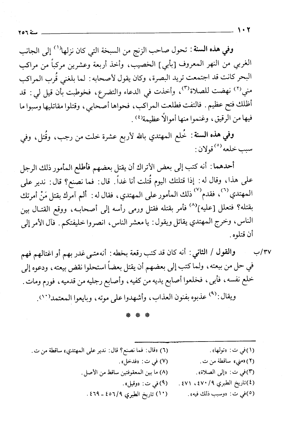 ويقال: [9] عذبوه بفنون العذاب، وأشهدوا على موته، وبايعوا المعتمد [10] .