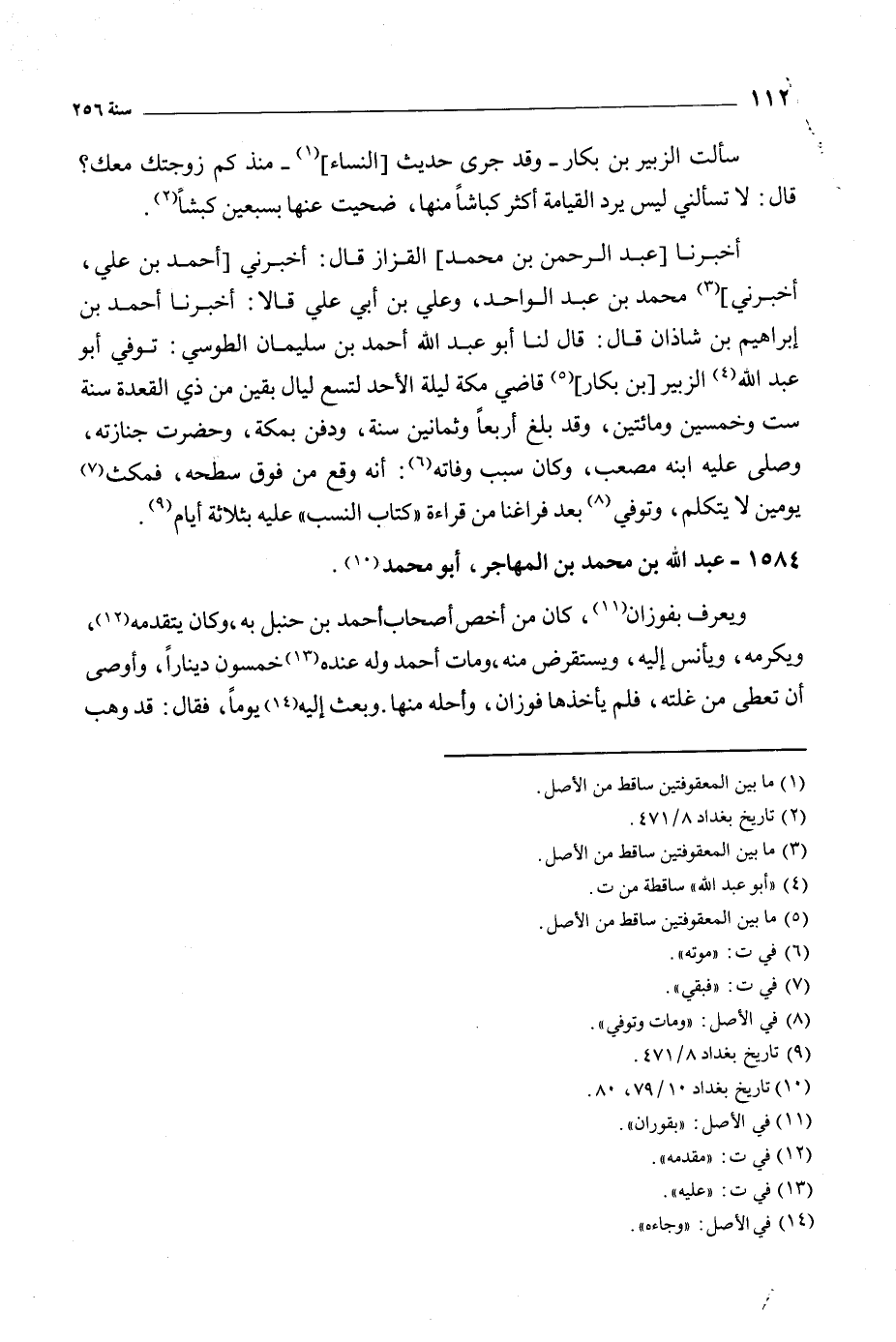 ويعرف بفوزان [11] ، كان من أخص أصحاب أَحْمَد بن حنبل به، وكان يتقدمه [12] ، ويكرمه، ويأنس إليه، ويستقرض منه، ومات أَحْمَد وله عنده [13] خمسون دينارا، وأوصى أن تعطى من غلته، فلم يأخذها فوزان، وأحله منها. وبعث إليه [14] يوما، فقال: قد وهب
