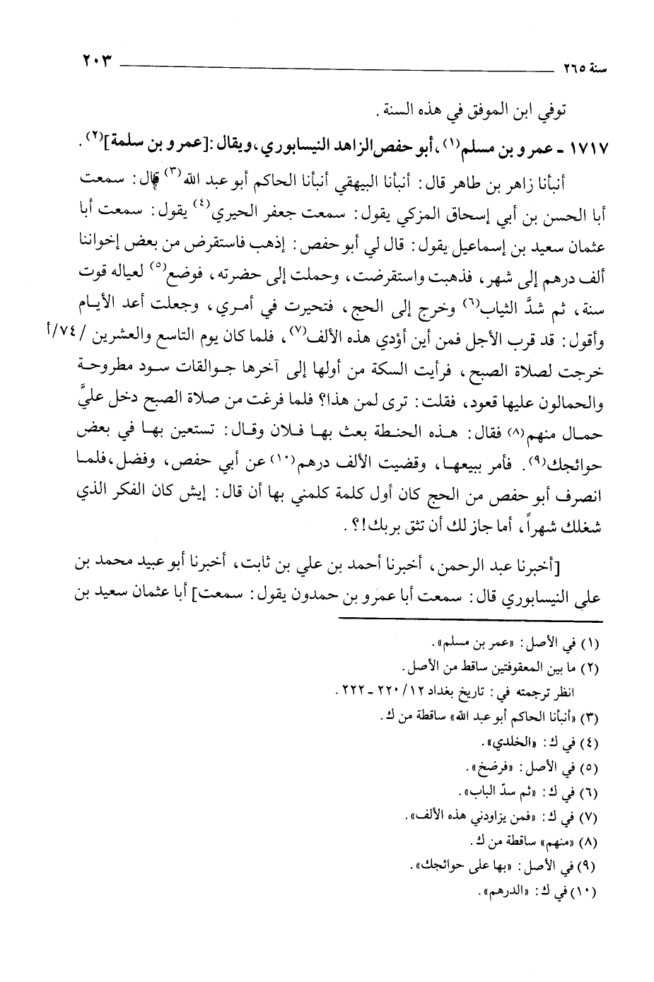 1717- عمرو بن مسلم [1] ، أبو حفص الزاهد النيسابوري، ويقال: [عمرو بن سلمة] [2] .