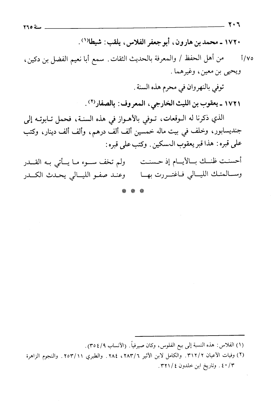[1] الفلاس: هذه النسبة إلى بيع الفلوس، وكان صيرفيا. (الأنساب 9/ 354) .