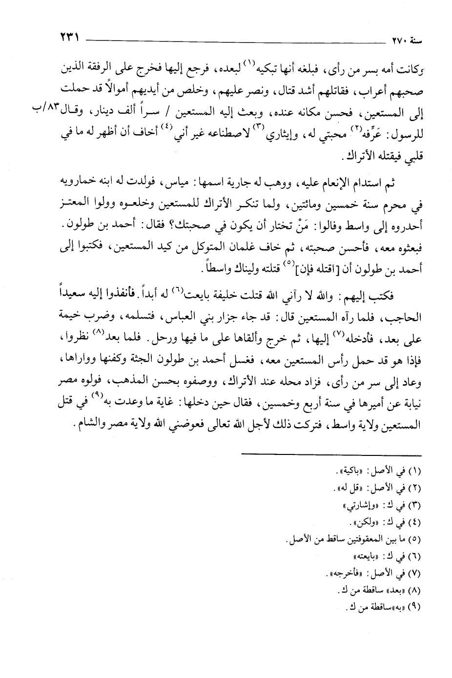 فبعثوه معه، فأحسن صحبته، ثم خاف غلمان المتوكل من كيد المستعين، فكتبوا إلى أَحْمَد بن طولون أن [أقتله فان] [5] قتلته وليناك واسطا.