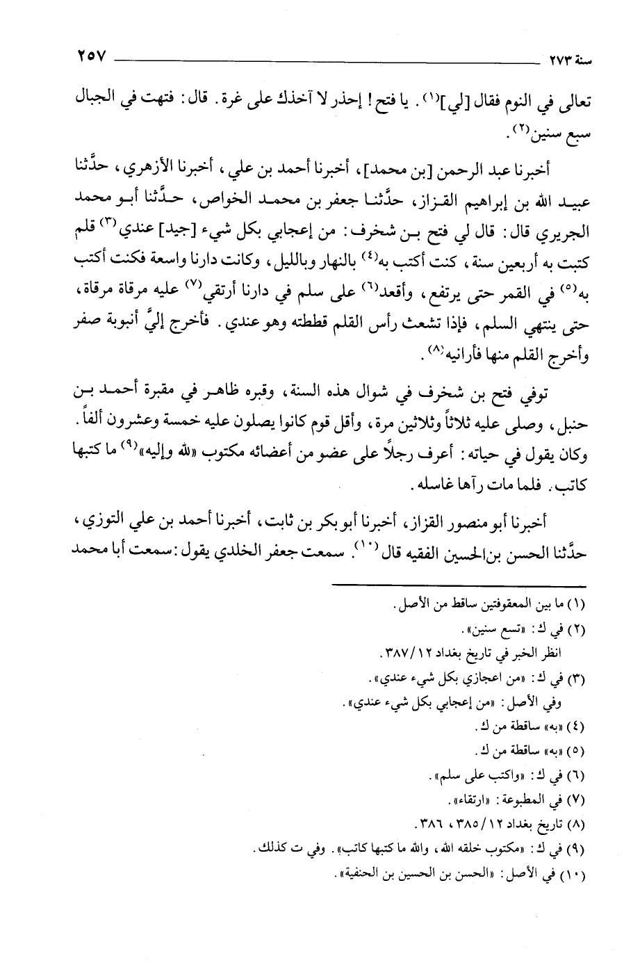 انظر الخبر في تاريخ بغداد 12/ 387.