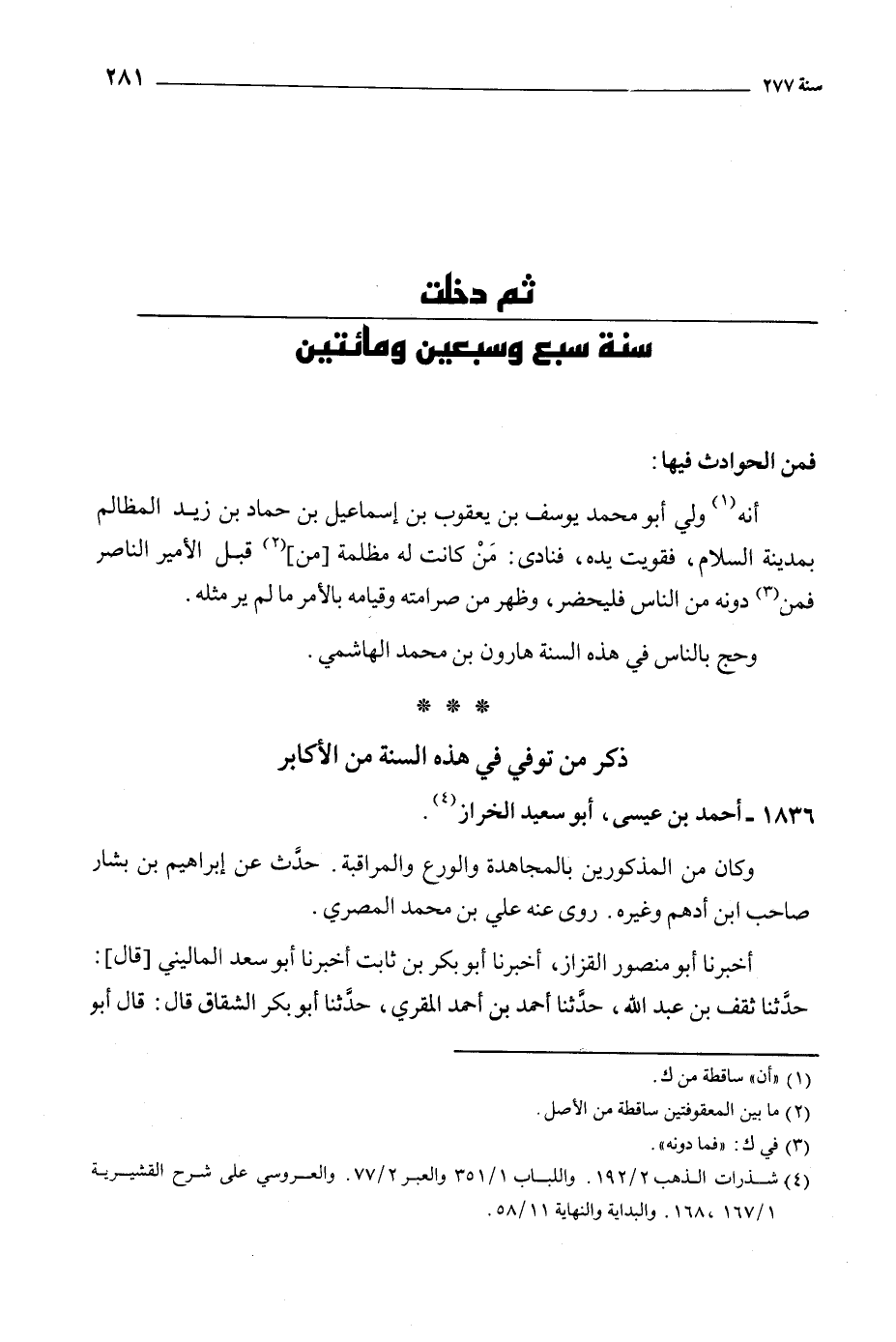ثم دخلت سنة سبع وسبعين ومائتين