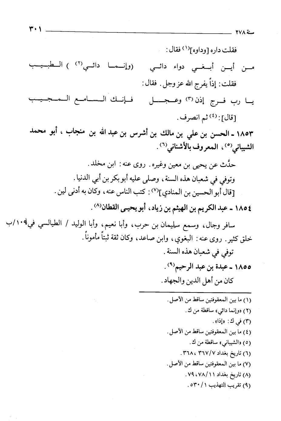 1853- الحسن بن علي بن مالك بن أشرس بن عَبْد اللَّهِ بن منجاب، أبو مُحَمَّد الشيباني [5] ، المعروف بالأشناني [6] .