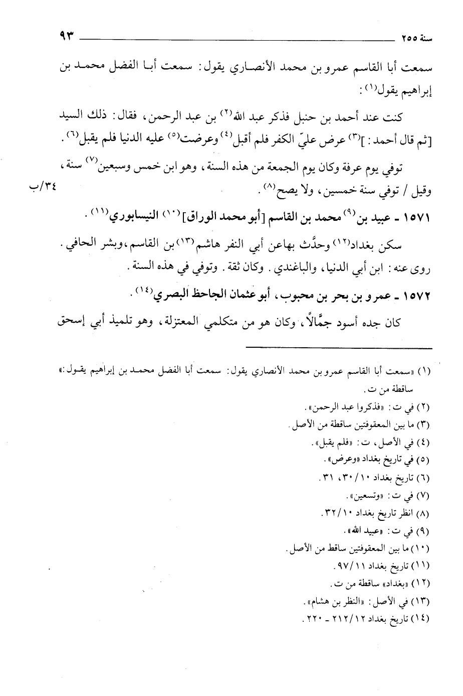 [1] «سَمِعْتُ أبا القاسم عمرو بن مُحَمَّد الأنصاري يقول: سمعت أبا الفضل مُحَمَّد بن إبراهيم يقول:» ساقطة من ت.