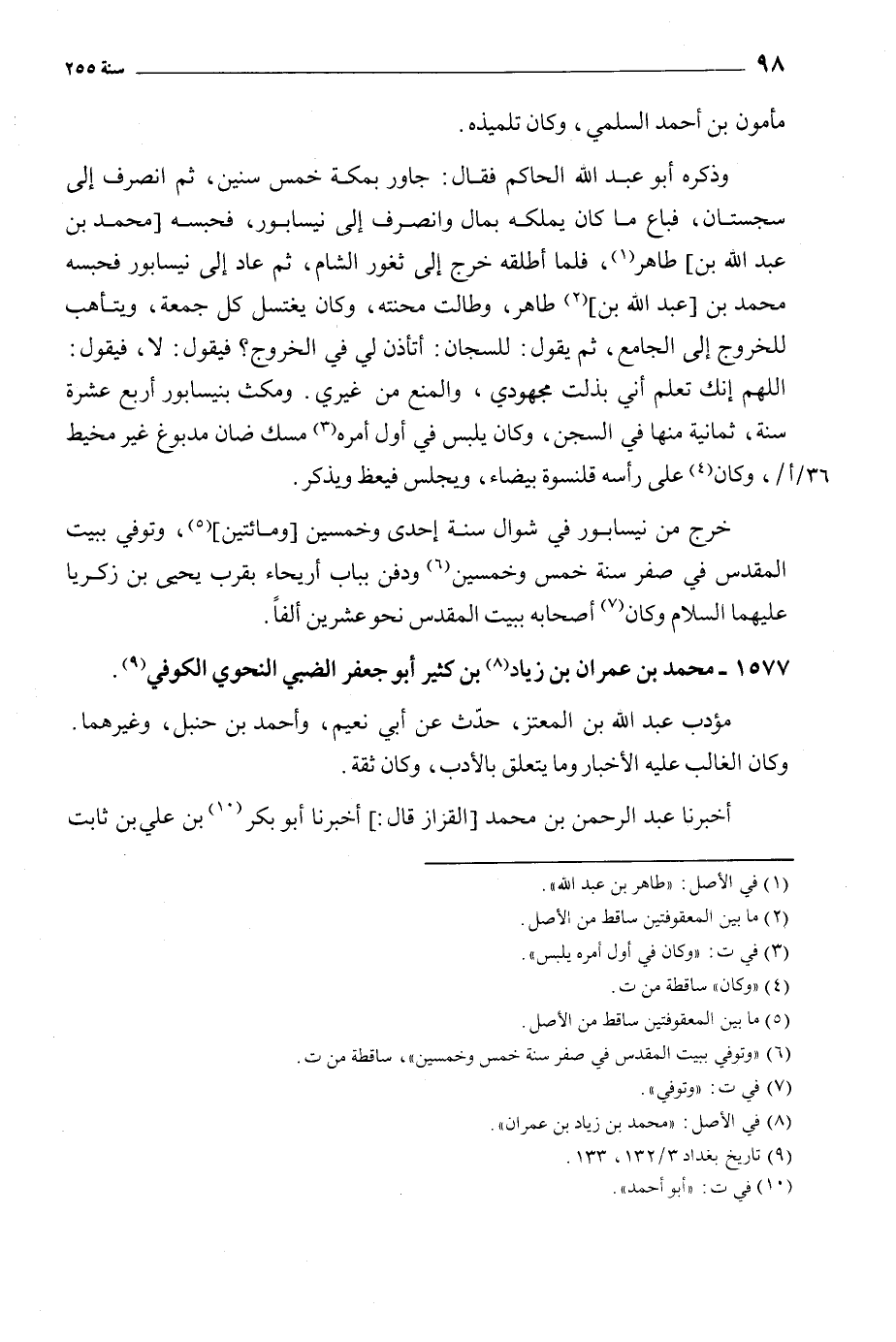 [6] «وتوفي ببيت المقدس في صفر سنة خمس وخمسين» ، ساقطة من ت.