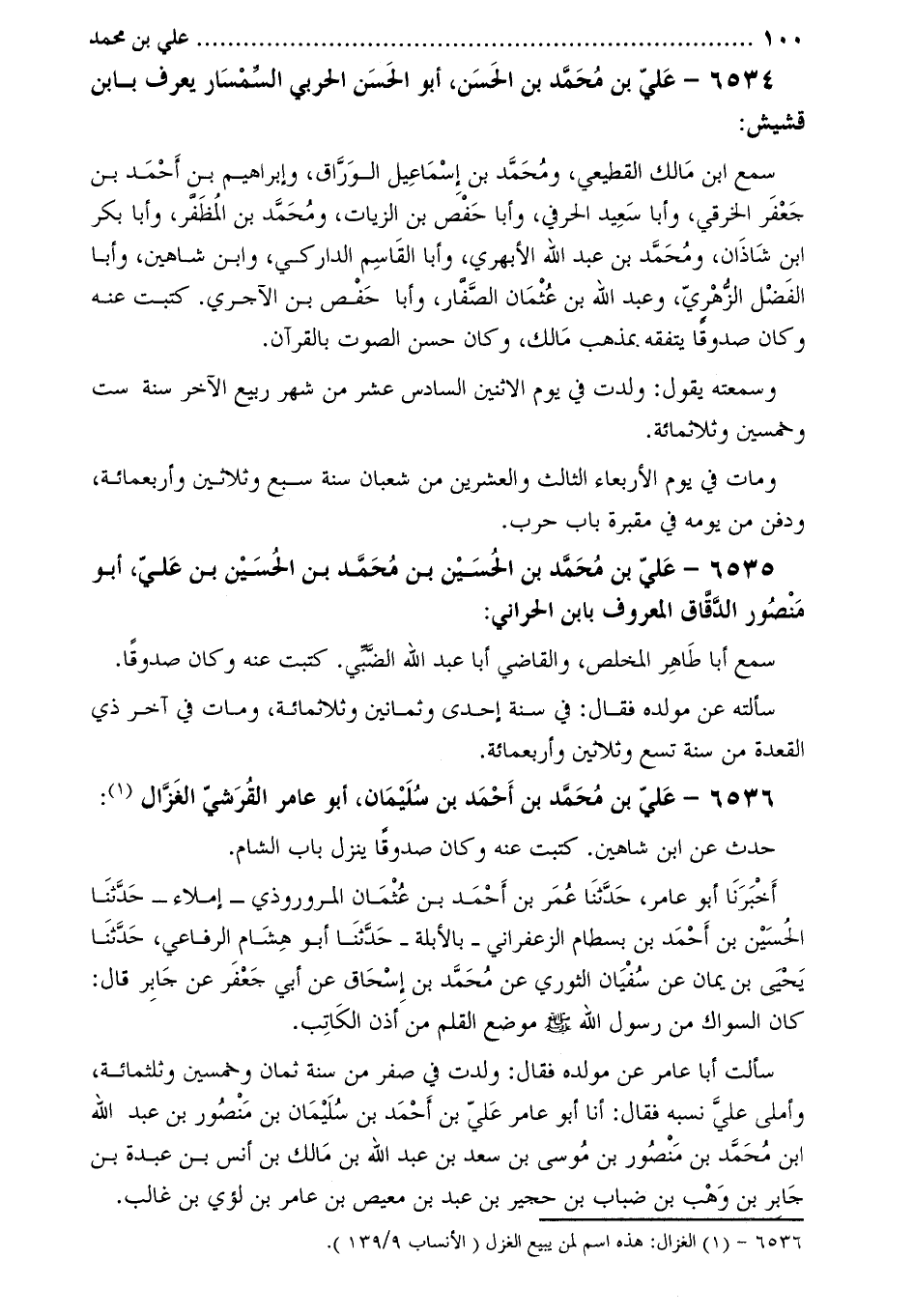 6536- علي بْن مُحَمَّد بْن أَحْمَد بْن سليمان، أَبُو عامر القرشي الغزال [1] :