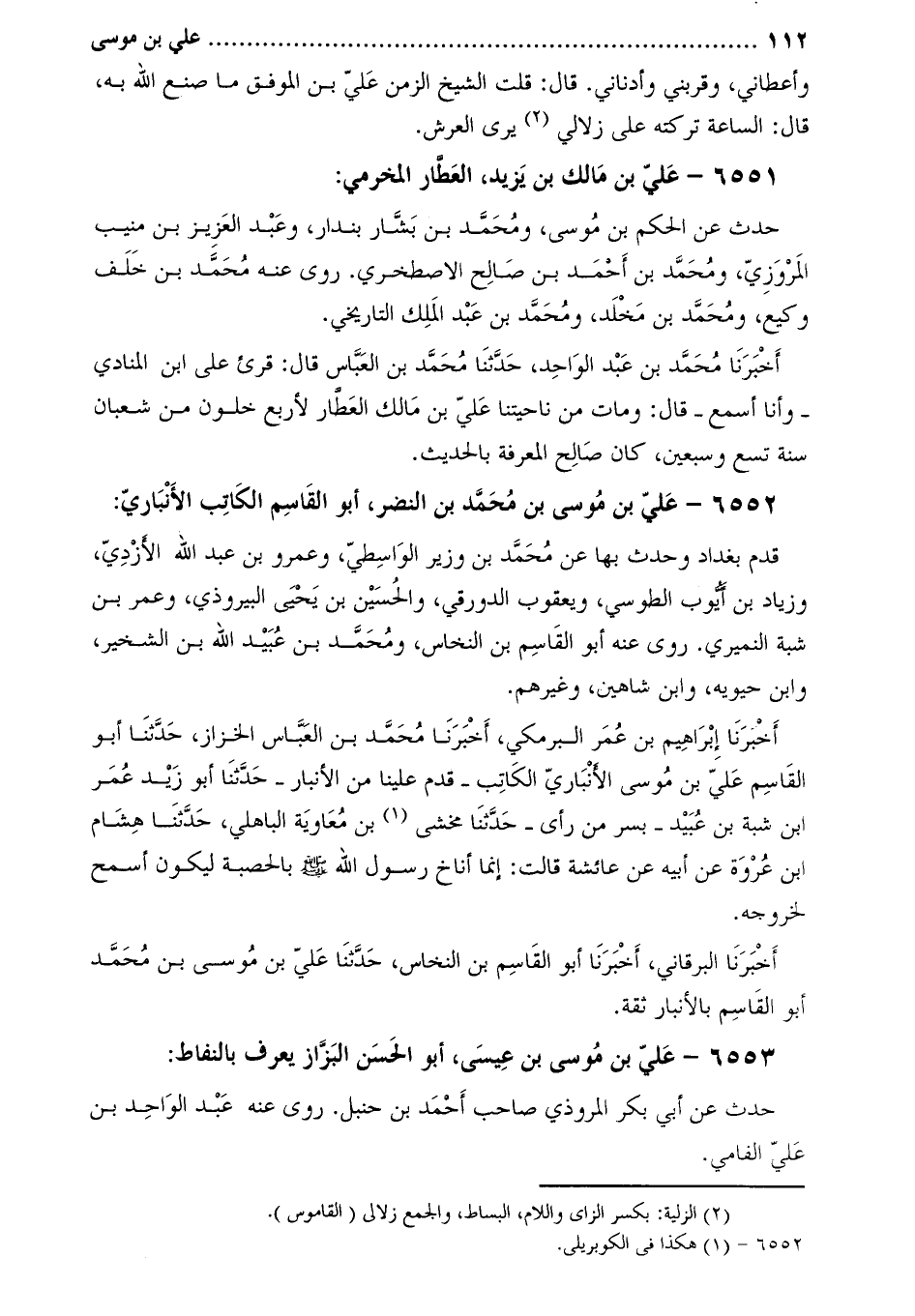 6552- علي بْن مُوسَى بْن مُحَمَّد بْن النضر، أَبُو القاسم الكاتب الأنباري: